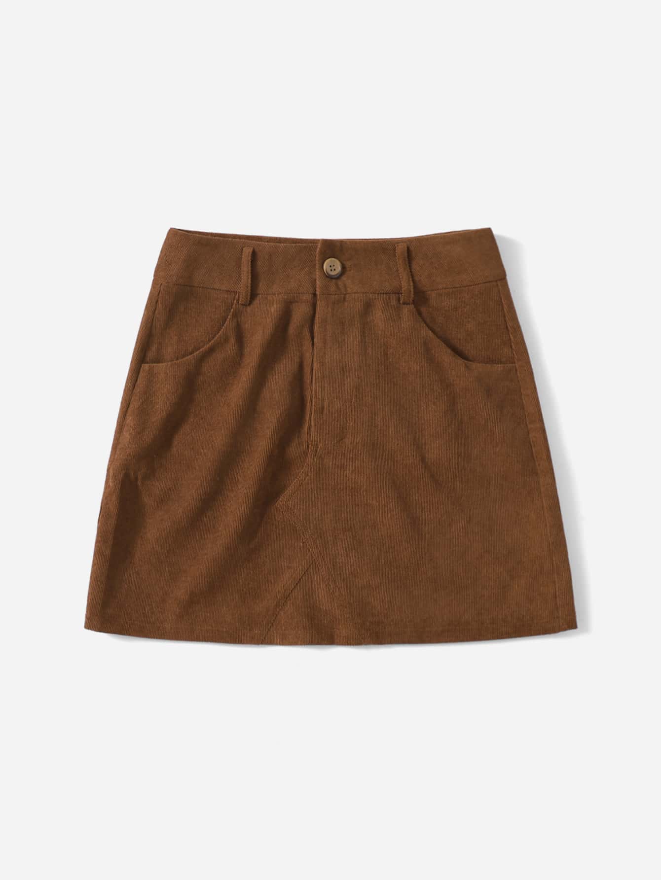 Solid Button Corduroy Skirt