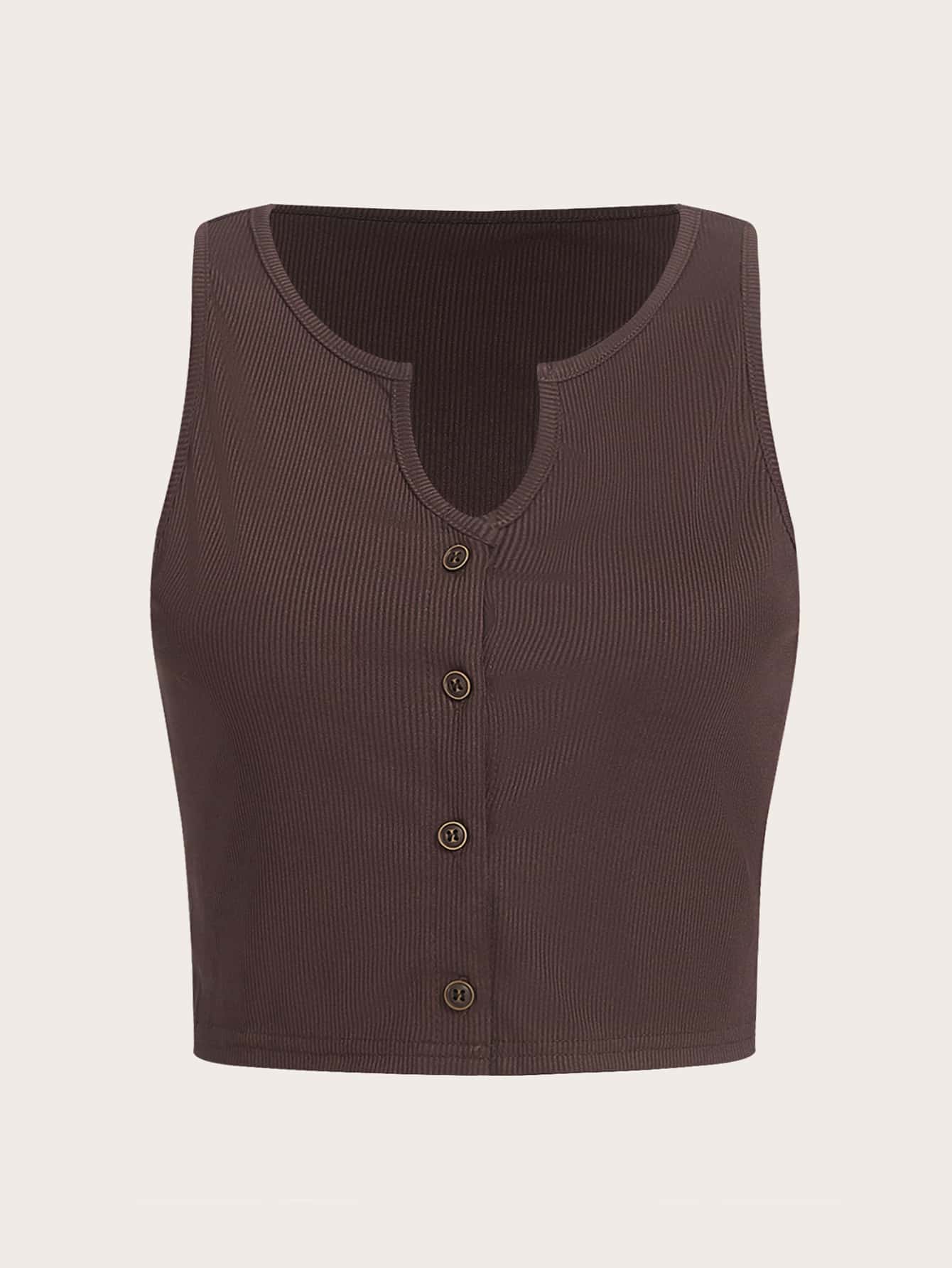 Solid Button Front Ribbed Tank
