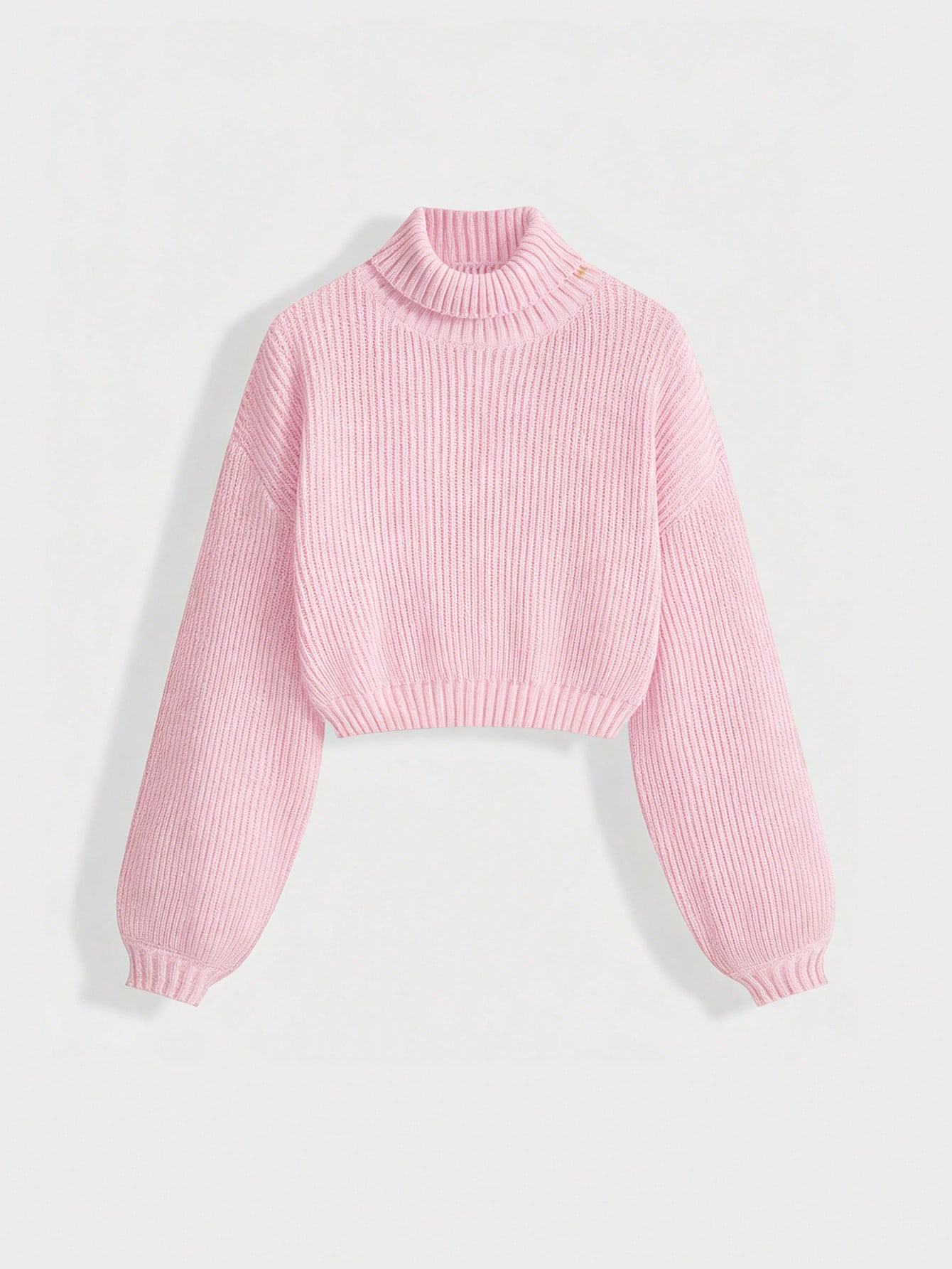 Solid Color Drop Shoulder Long Sleeve Ribbed Turtleneck Casual Knit Pullover Sweater