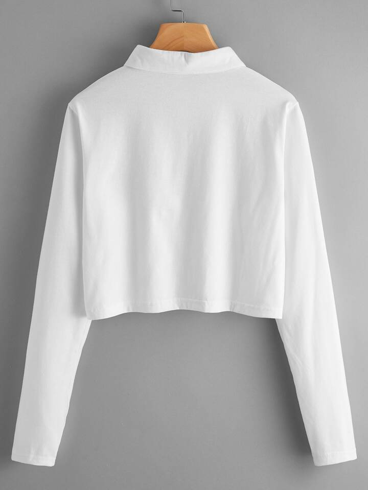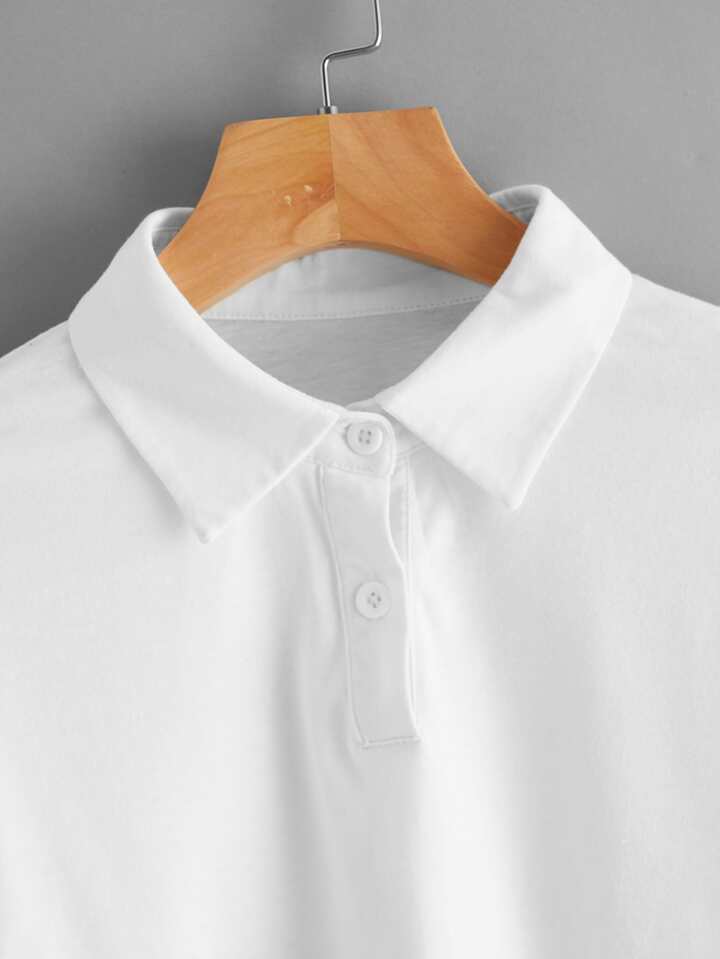 Solid Crop Polo Shirt