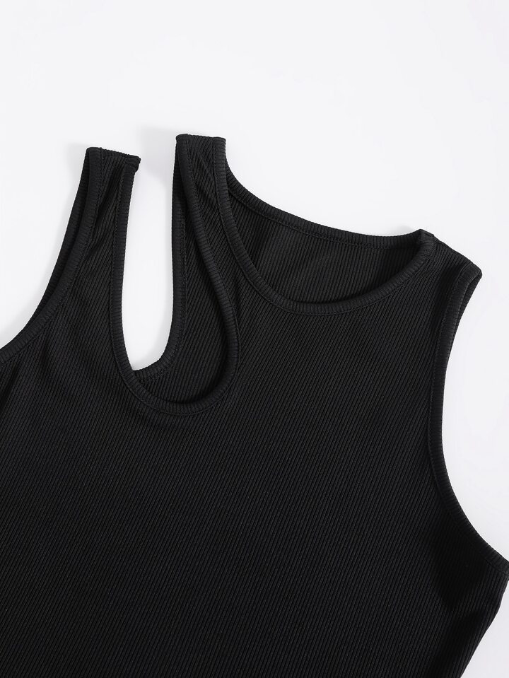 Solid Cut Out Shoulder Ribbed Knit Tank Top For Summer