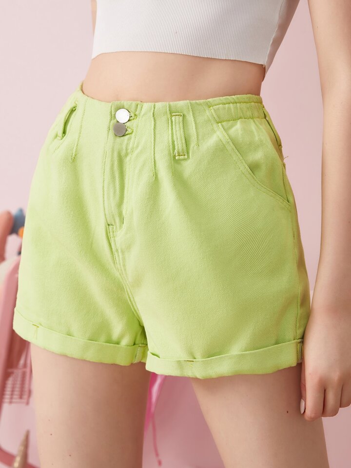 Solid Denim Shorts