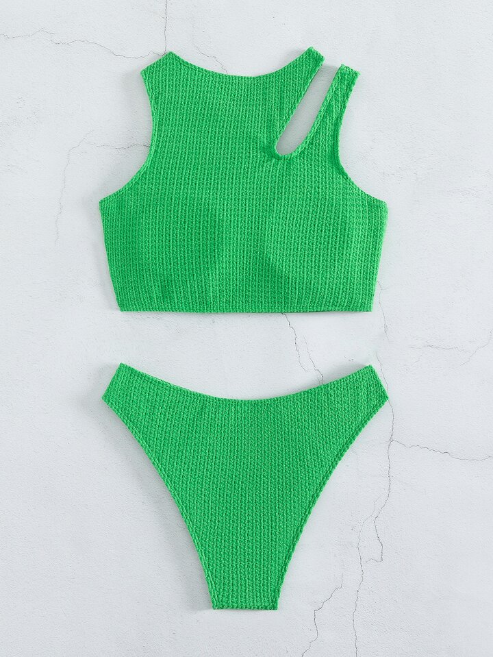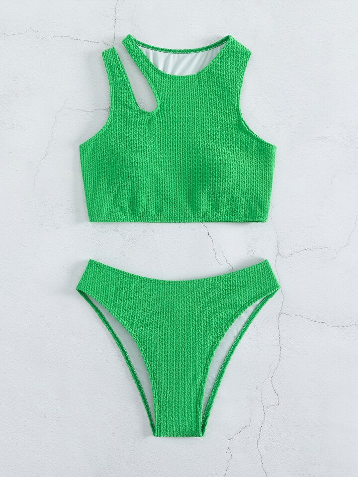 Solid High Cut Bikini Set Summer Beach