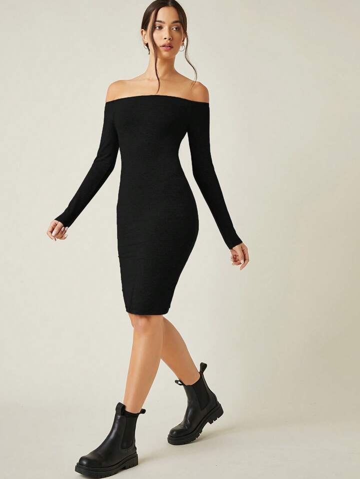 Solid Off Shoulder BodyconCasual Dinner Dating Dress