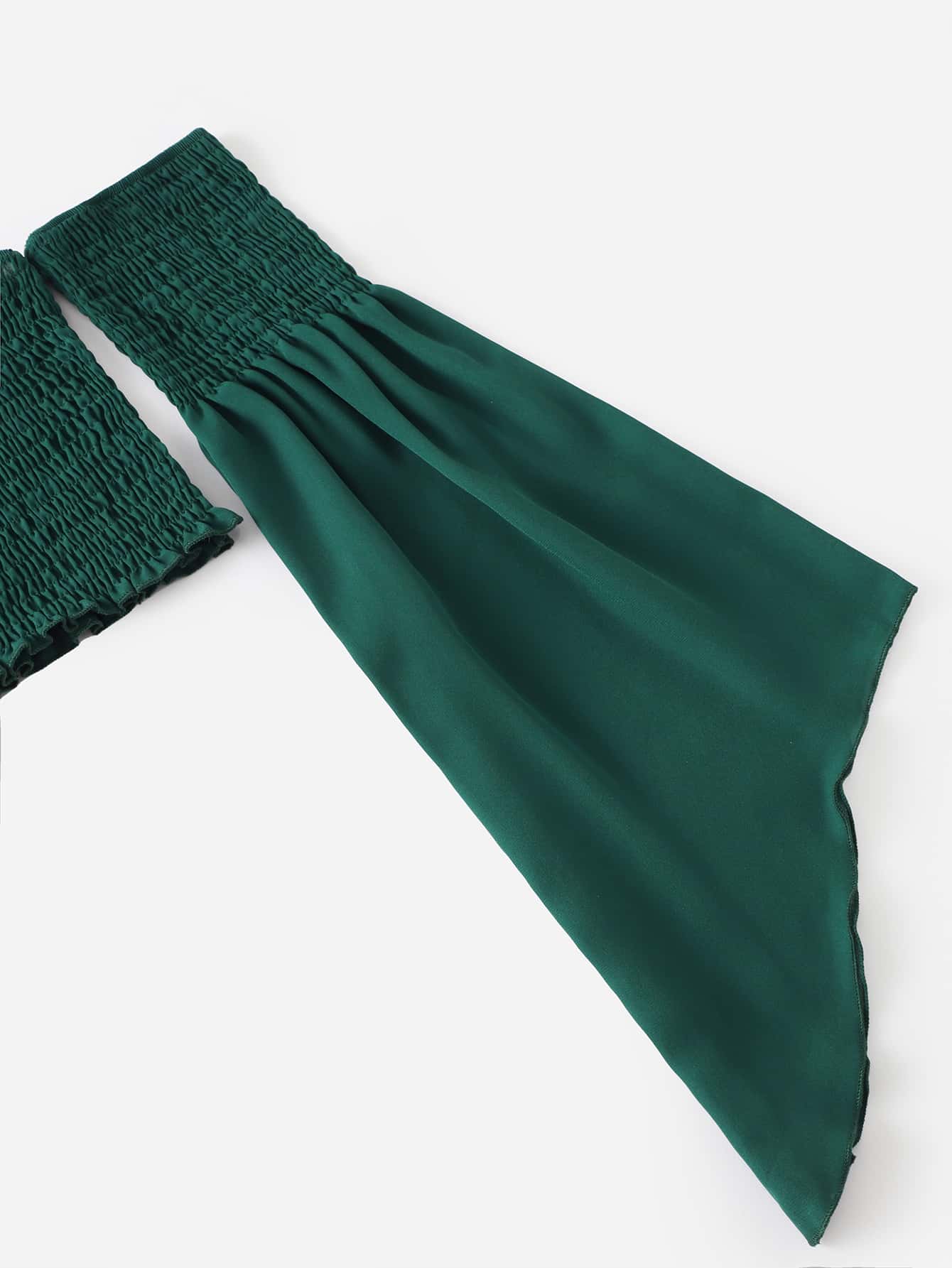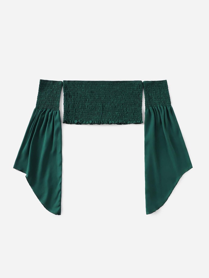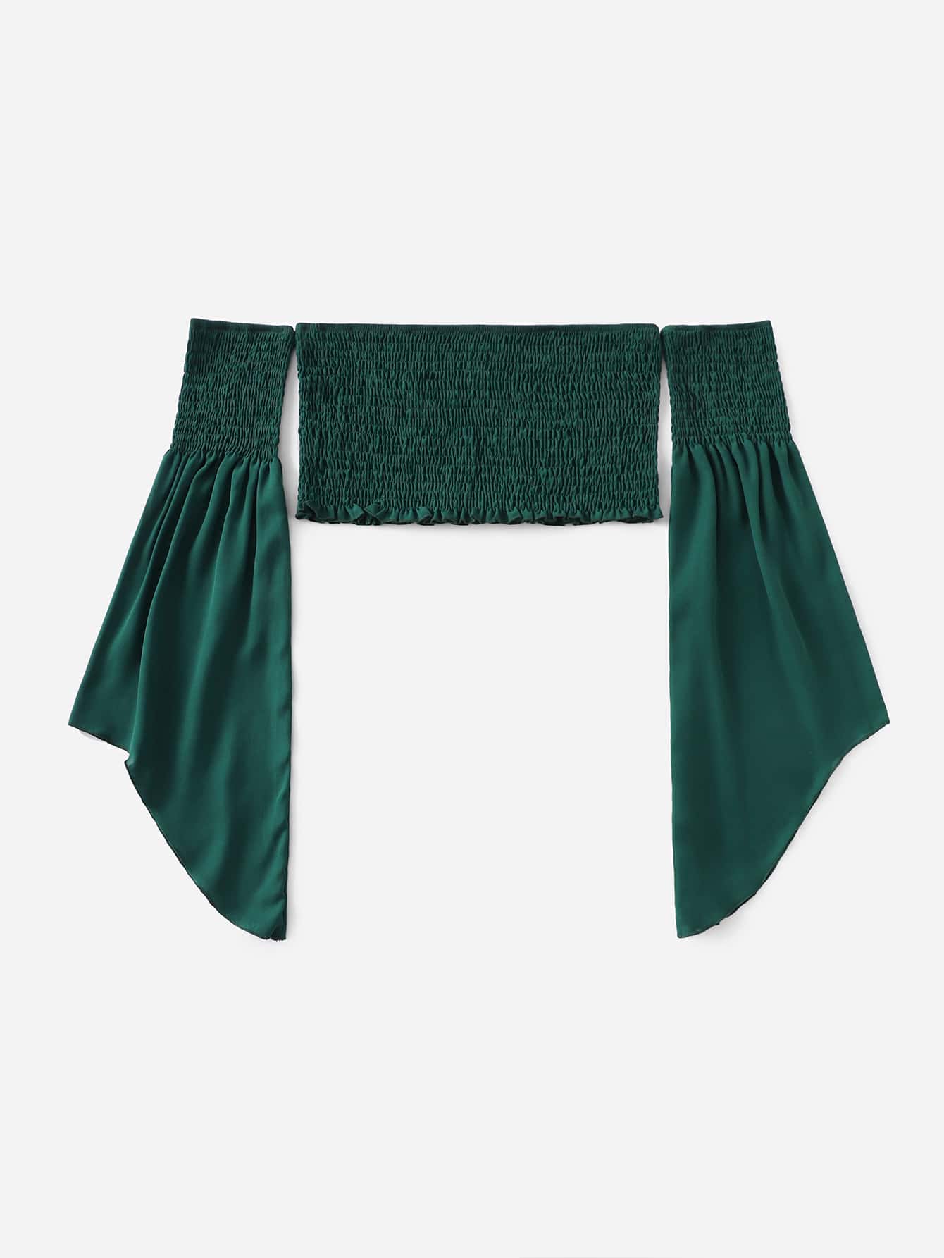 Solid Off The Shoulder Shirred Flounce Sleeve Blouse