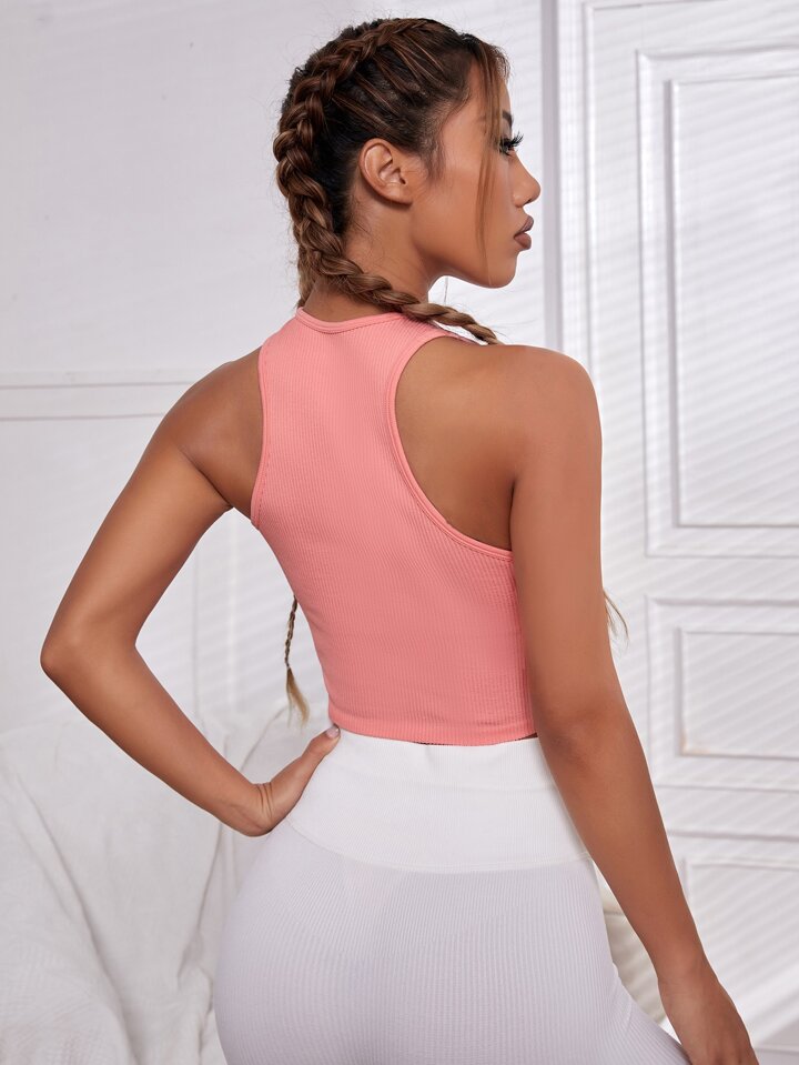 Solid Racer Back Crop Sports Tank Top