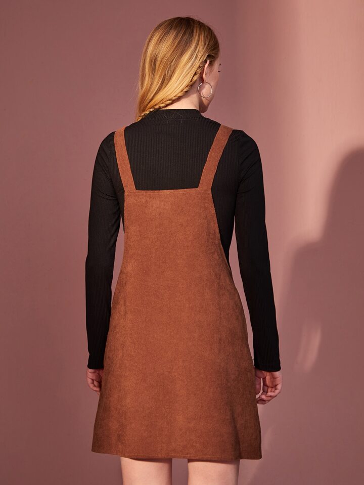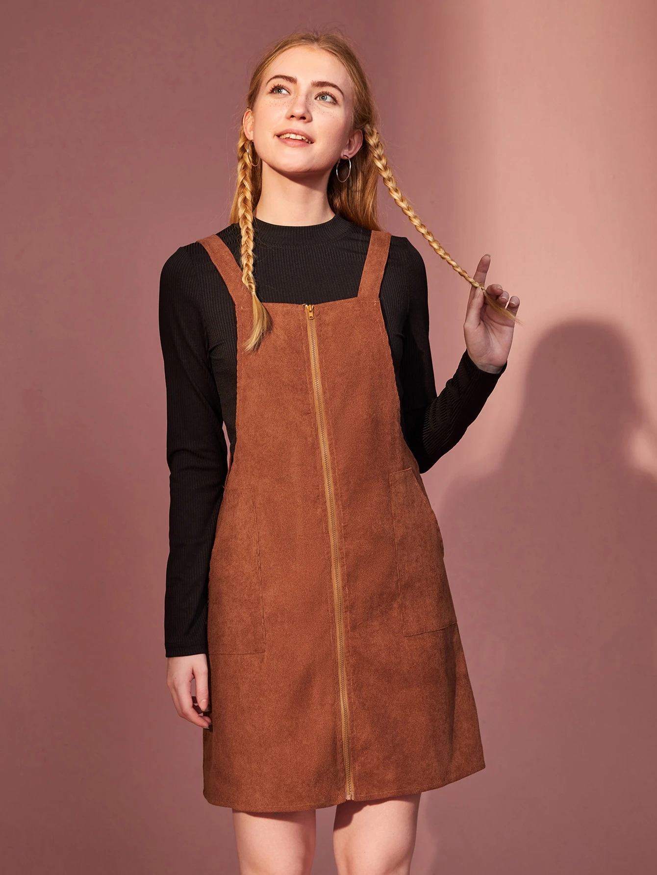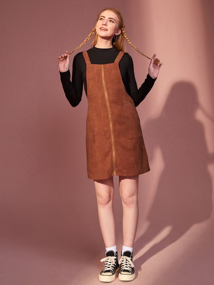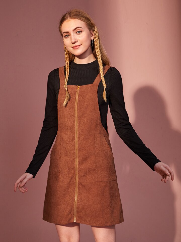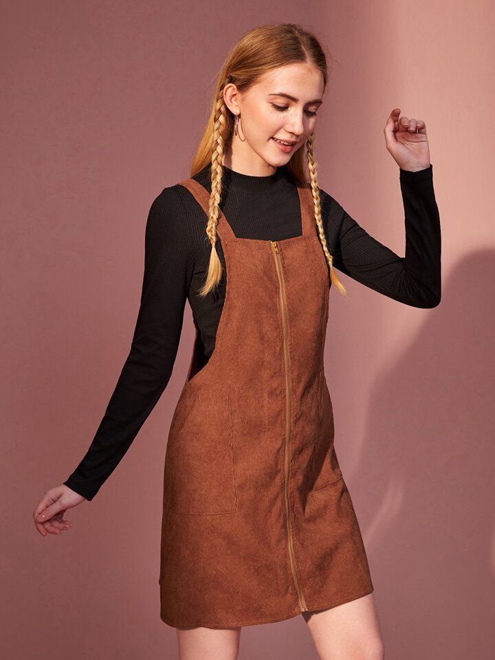 Solid Ribbed Tee & Corduroy Zip Up Dress
