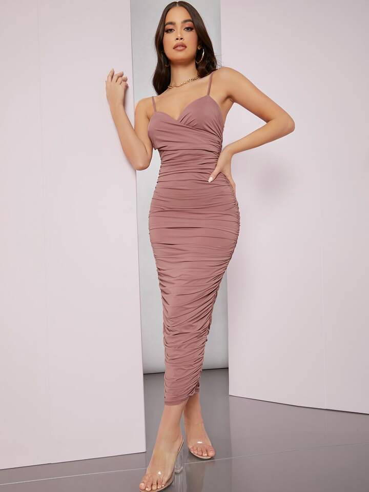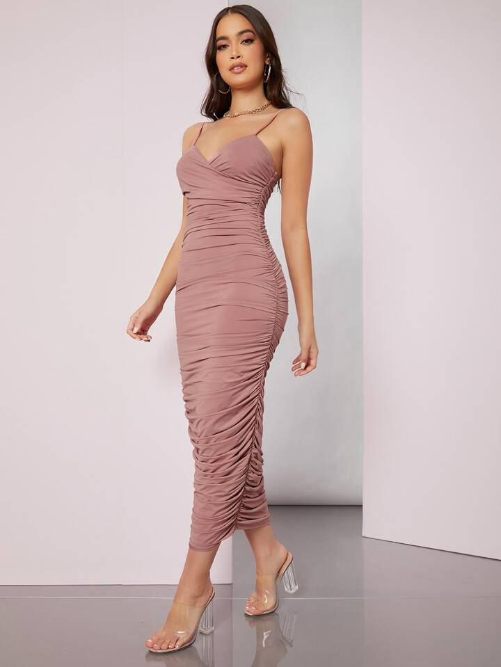 Solid Ruched Bodycon Dress