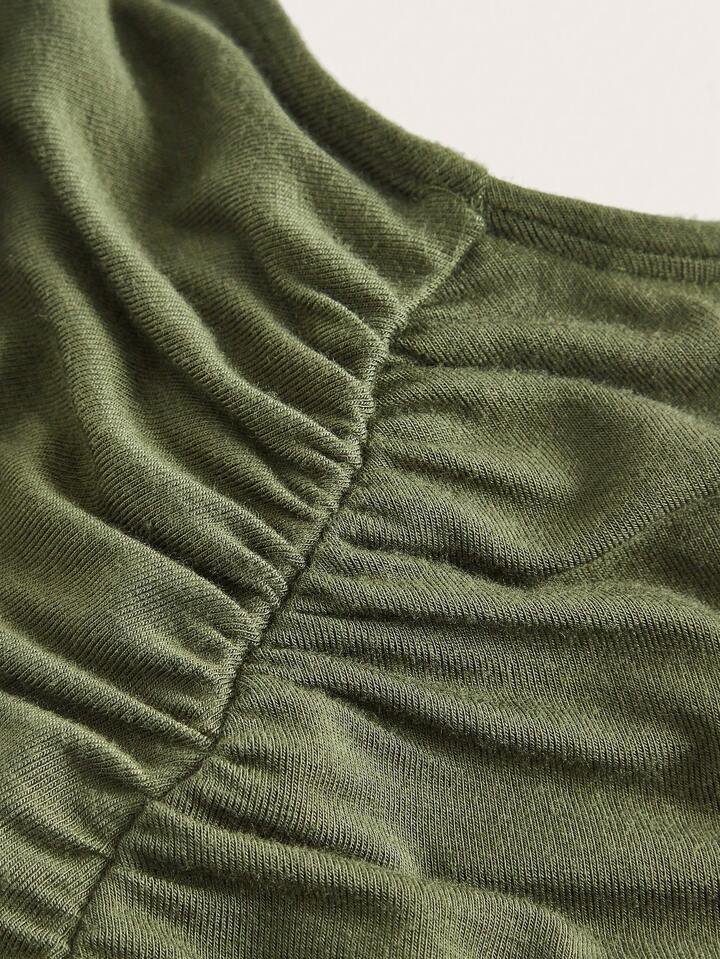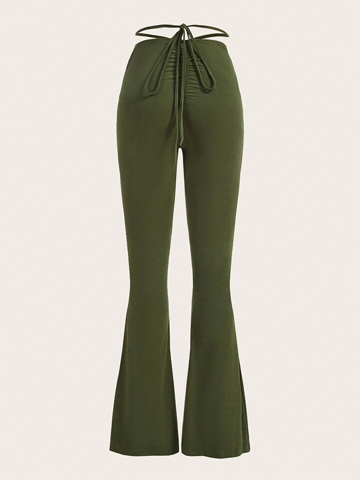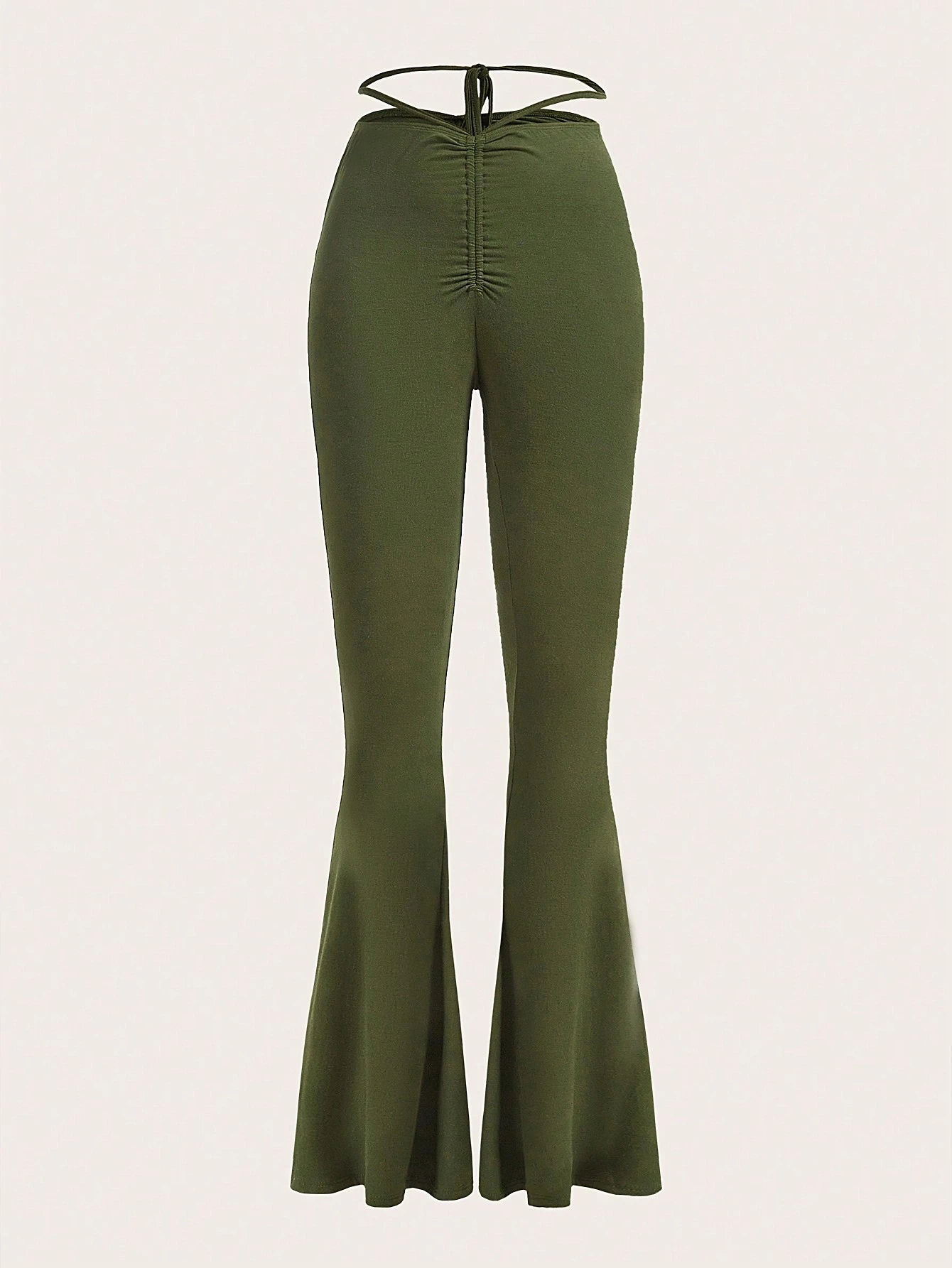 Solid Ruched Flare Leg Pants