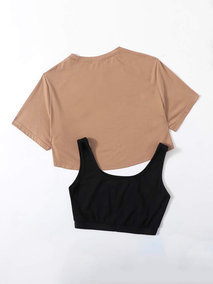 Solid Super Crop Tee & Letter Embroidery Tank Top
