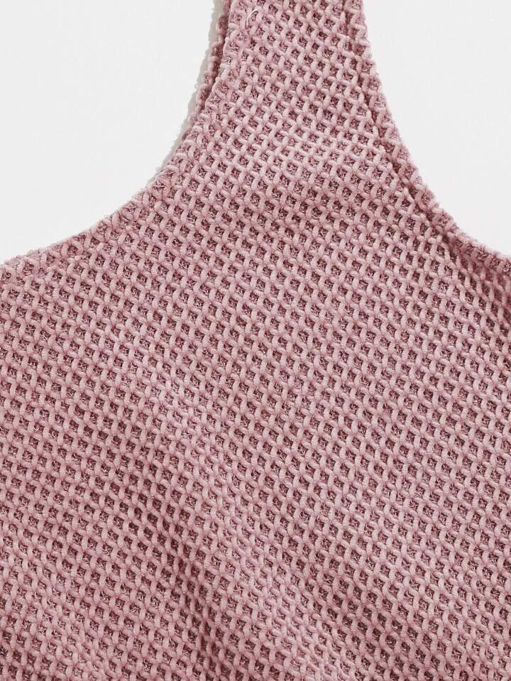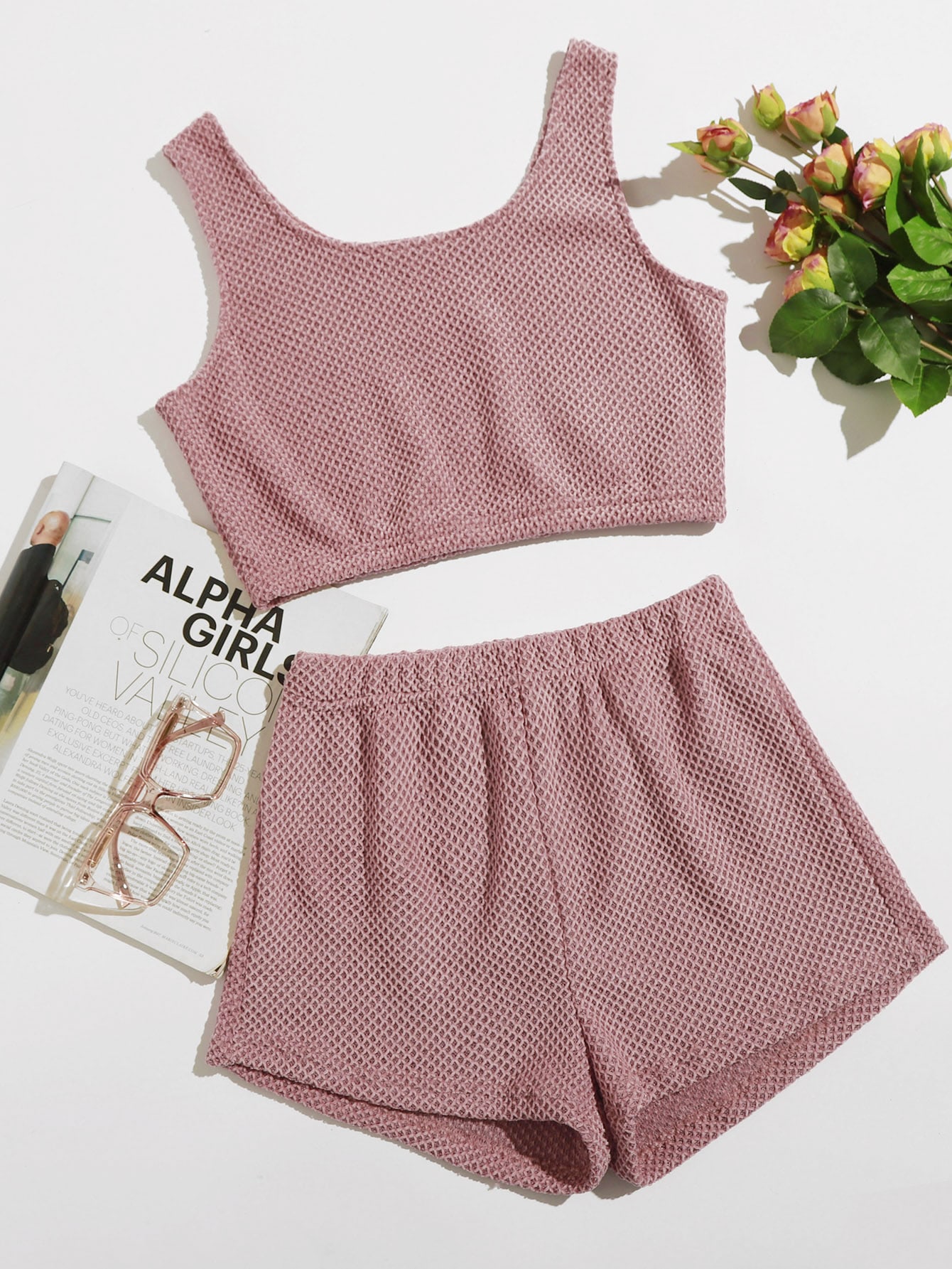 Solid Textured Crop Tank Top & Shorts Pajama Set