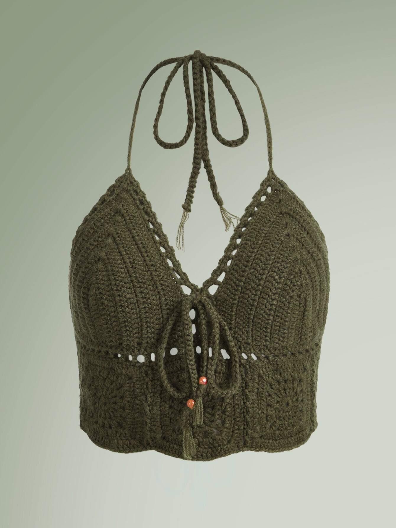 Solid Tie Front Halter Knit Top