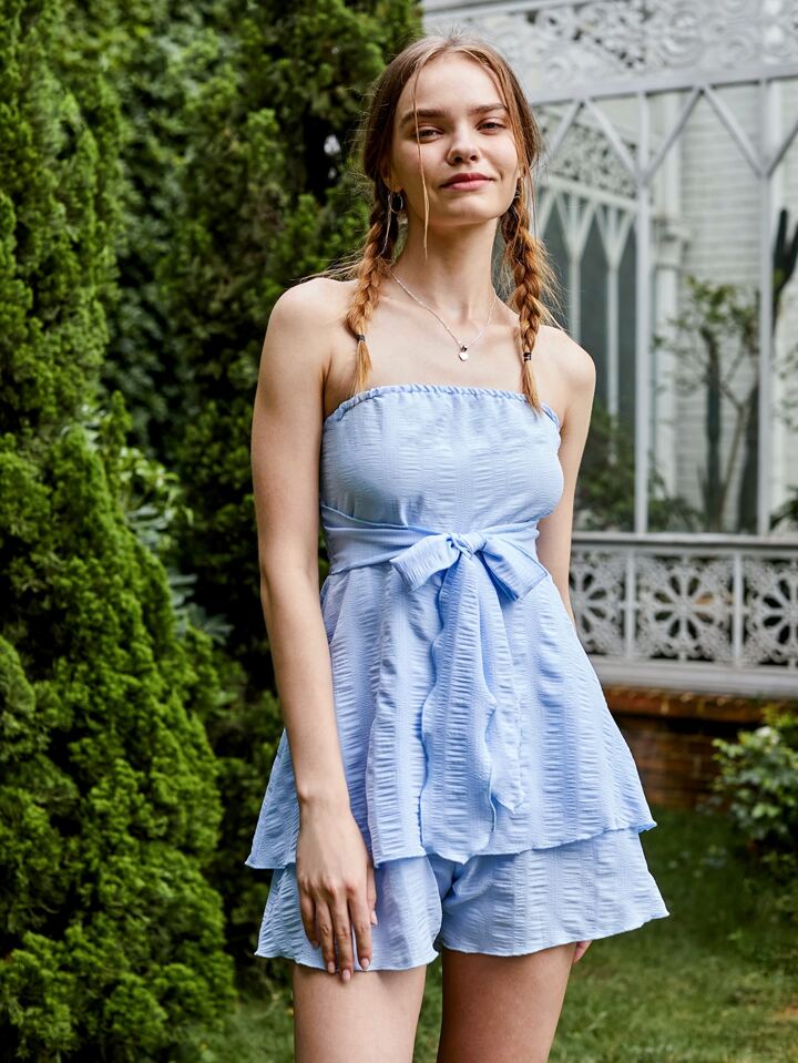 Solid Tie Front Tube Romper