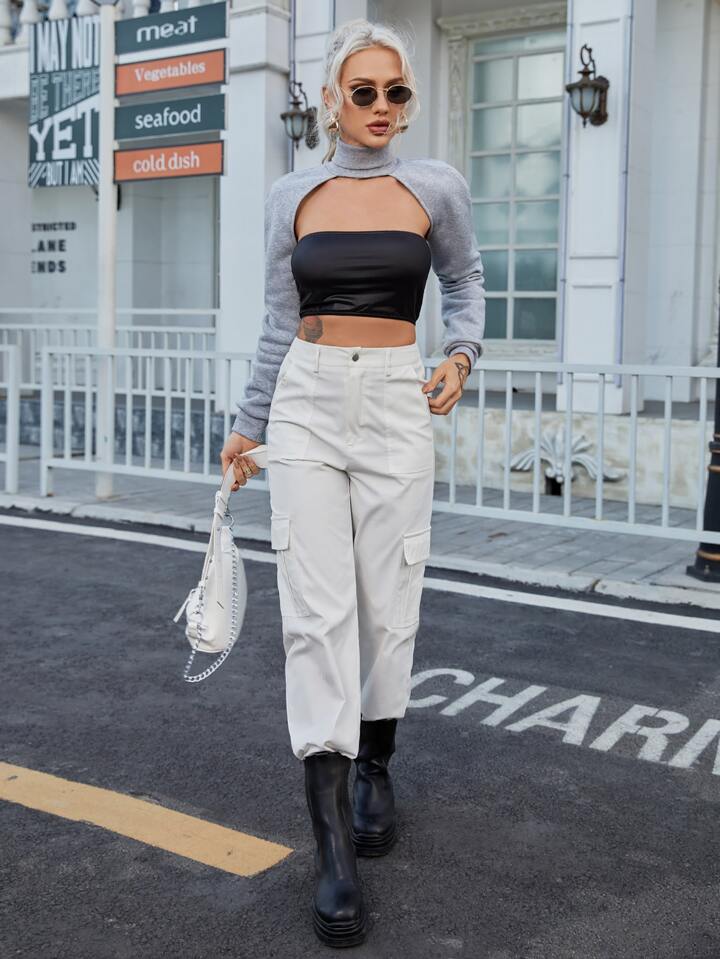 Solid Turtleneck Shrug Sweatshirt Without Bandeau