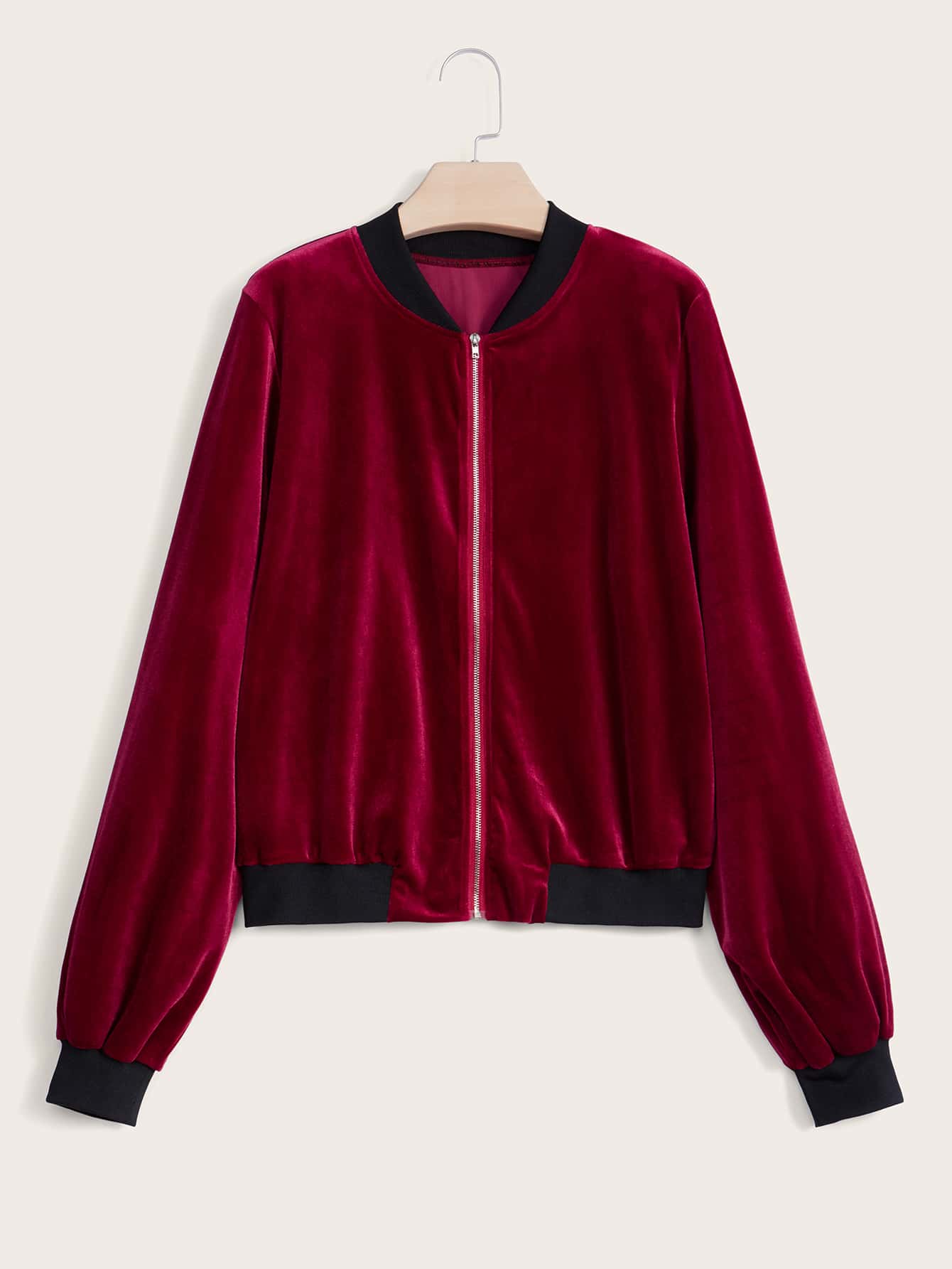 Solid Velvet Zip Up Bomber Jacket