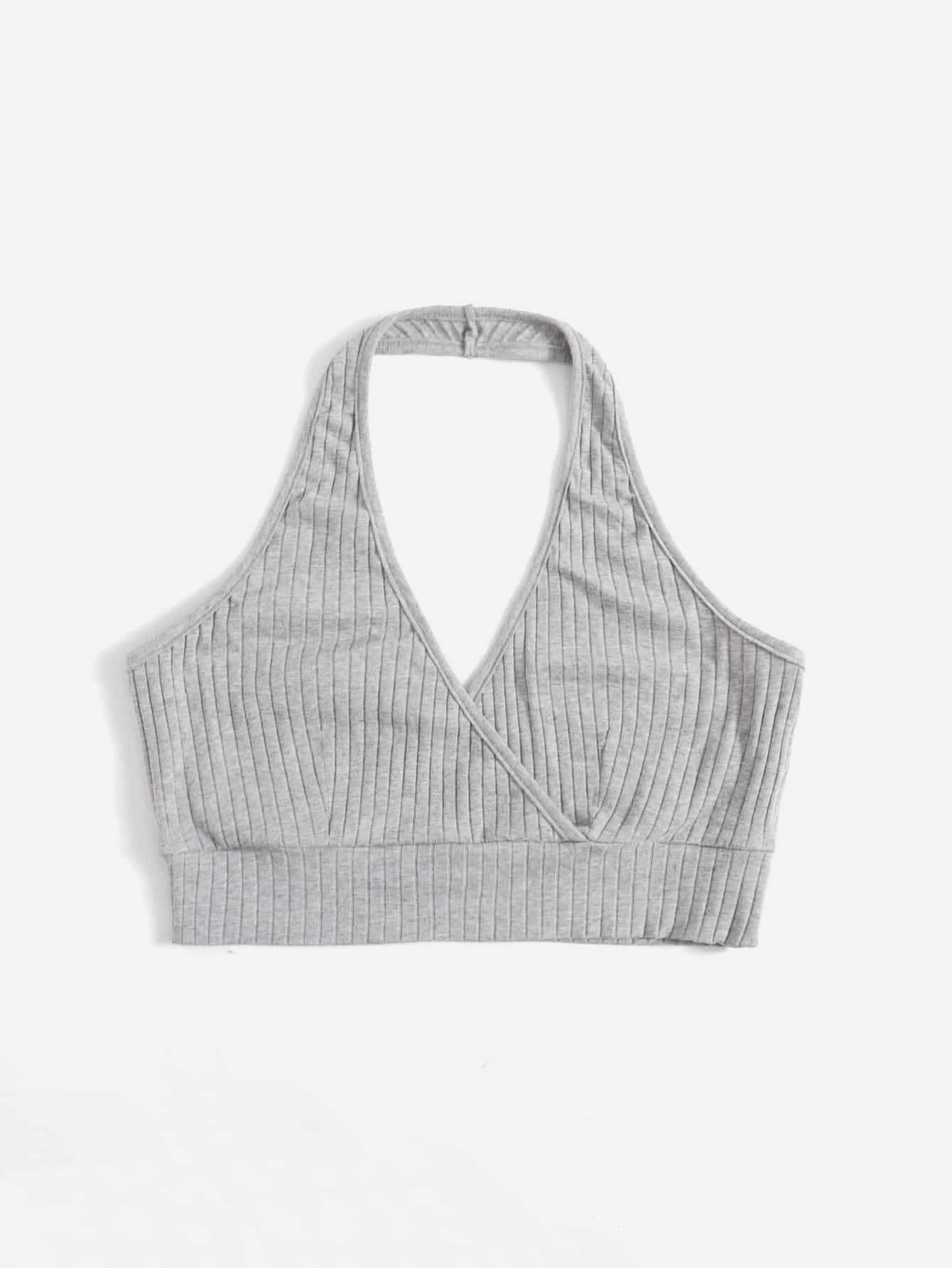 Solid Wrap Ribbed Halter Top
