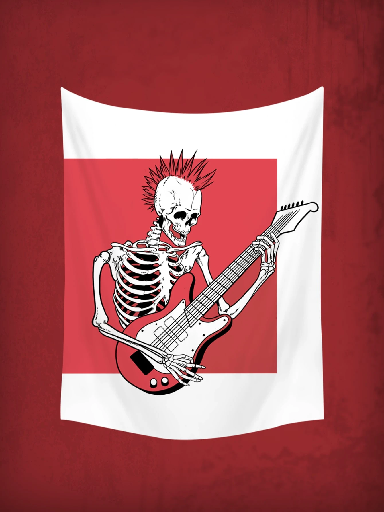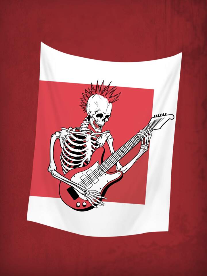 Sonchs Curiosities Skeleton & Guitar Print Tapestry