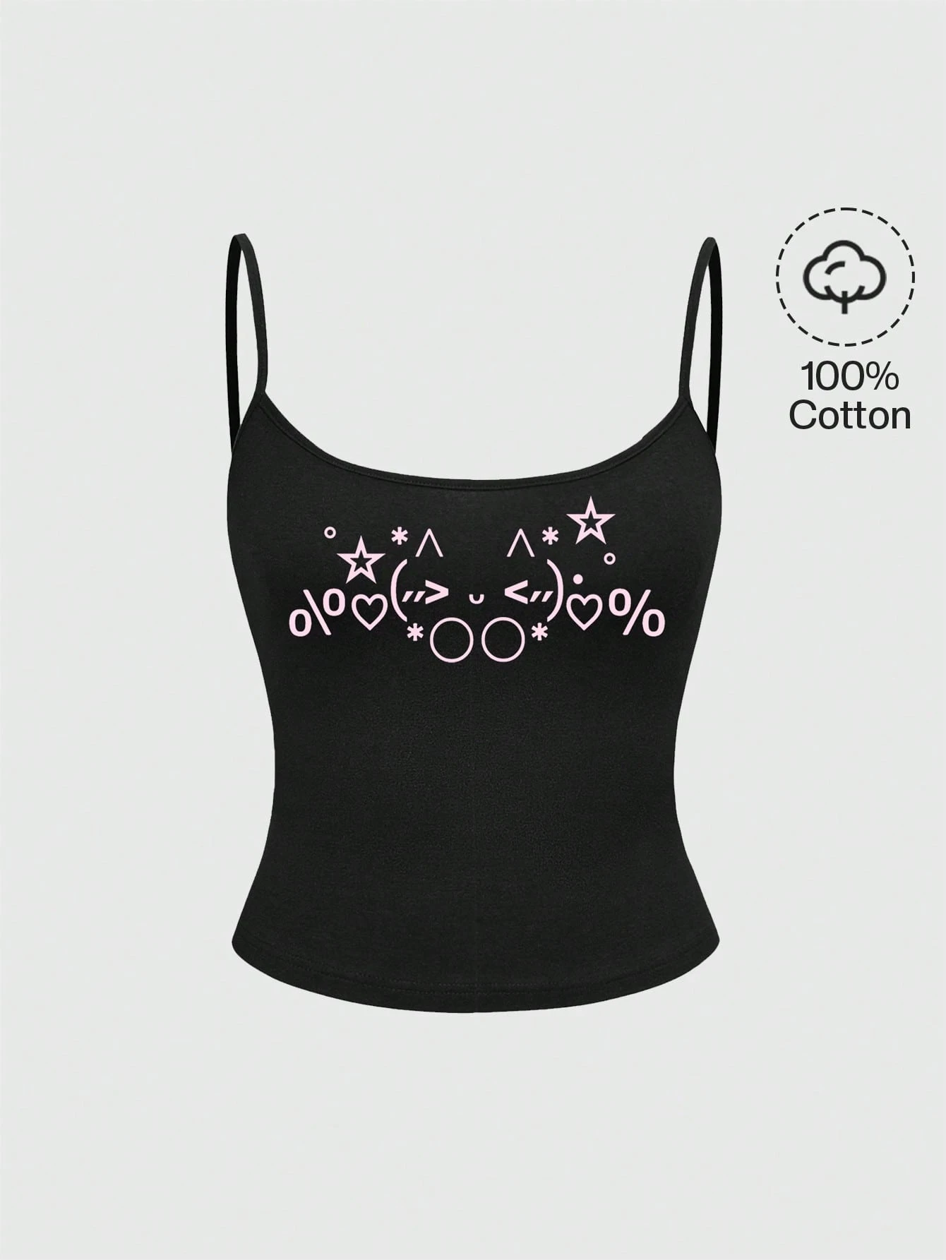 Spring/Summer Black Graphic Cute Emoticon Y2K Korean Kawaii Blushing Cat Face Graphic Black Camisole For Women