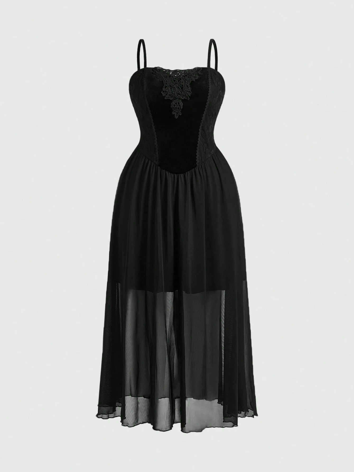 Spring/Summer Gothic Retro Palace Elegant Long Women's Velvet Mesh Dress, Autumn/Winter Black Spaghetti Strap Dress, Vintage Luxurious Formal Gown, Plus Size Dress, Black Dress Valentine's Day Party