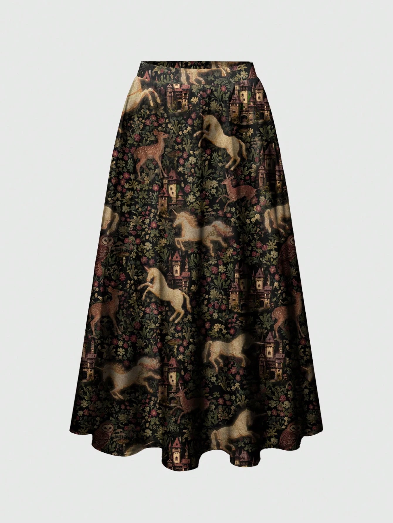 Spring/Summer Vacation Flower Black Gothic Dark Elegant Vintage Women Plus Size Loose Fit Printed A-Line Skirt