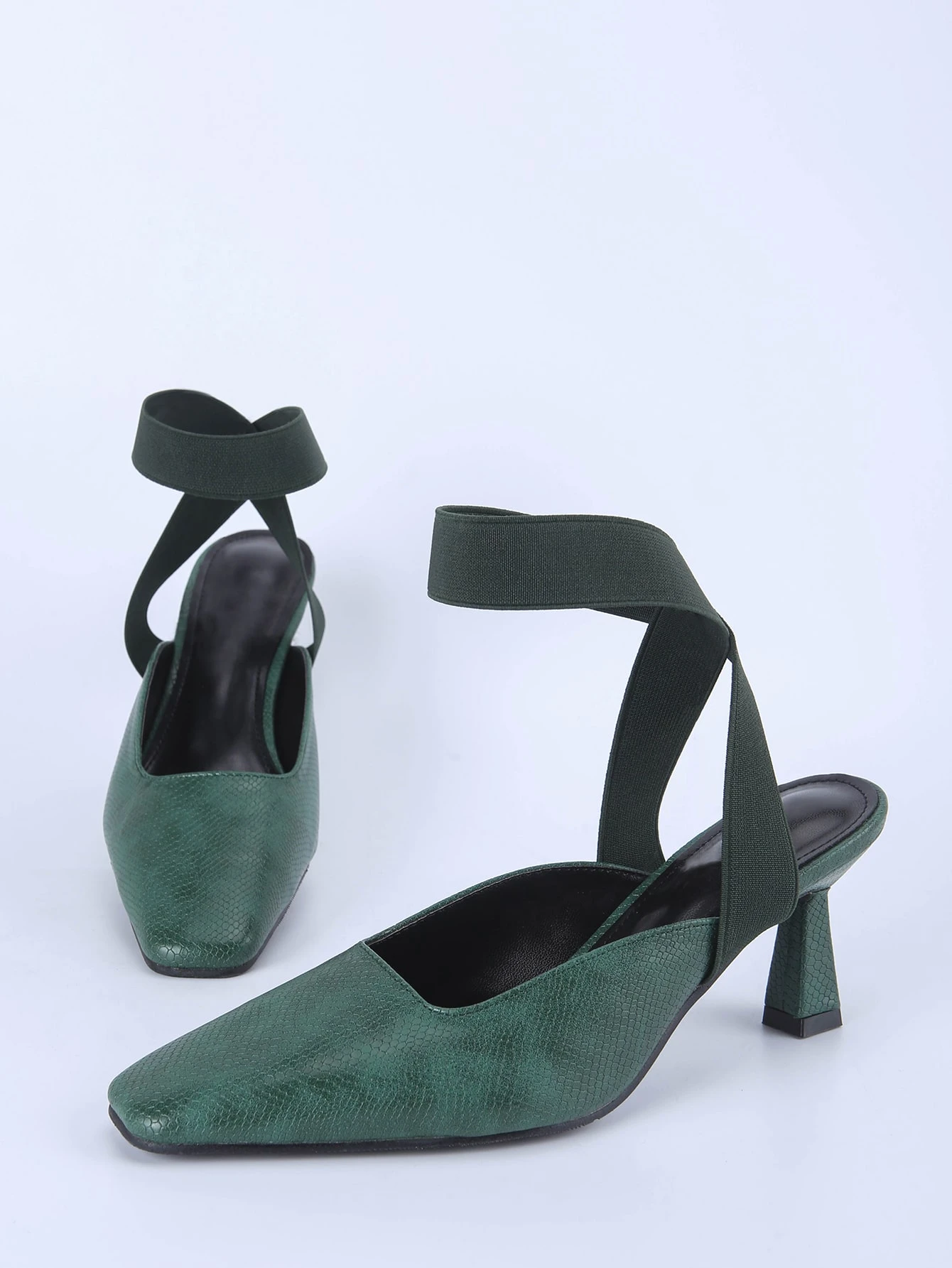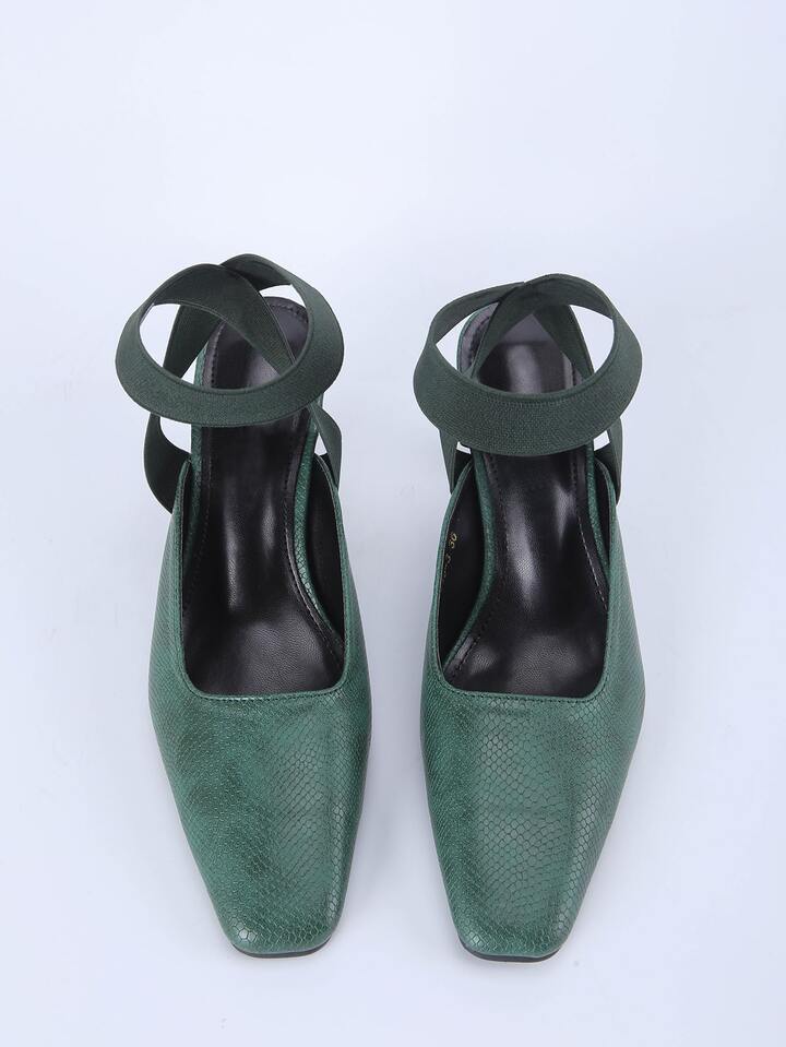 Square Toe Ankle Strap Spool Heels