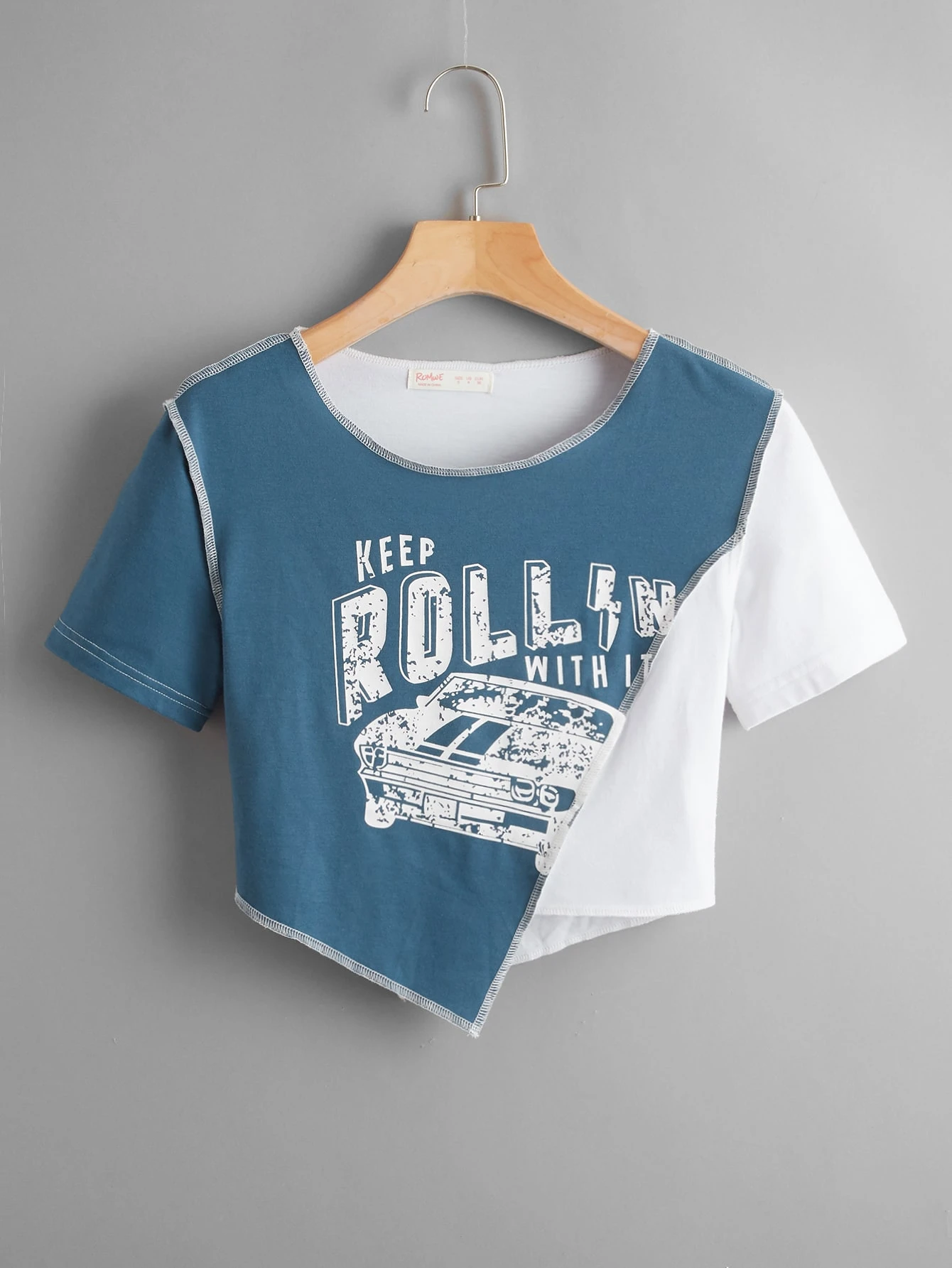 Stitching Trim Letter Graphic Colorblock Tee