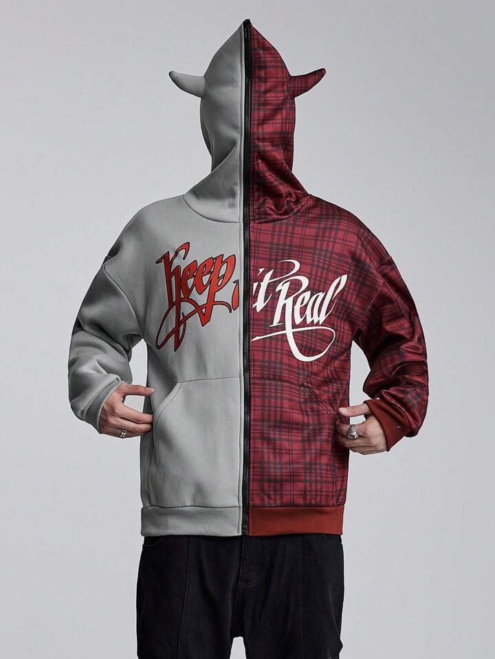 Street Life 1pc Men's Anime Style Zipper Hoodie, Suitable For Spring And Summer