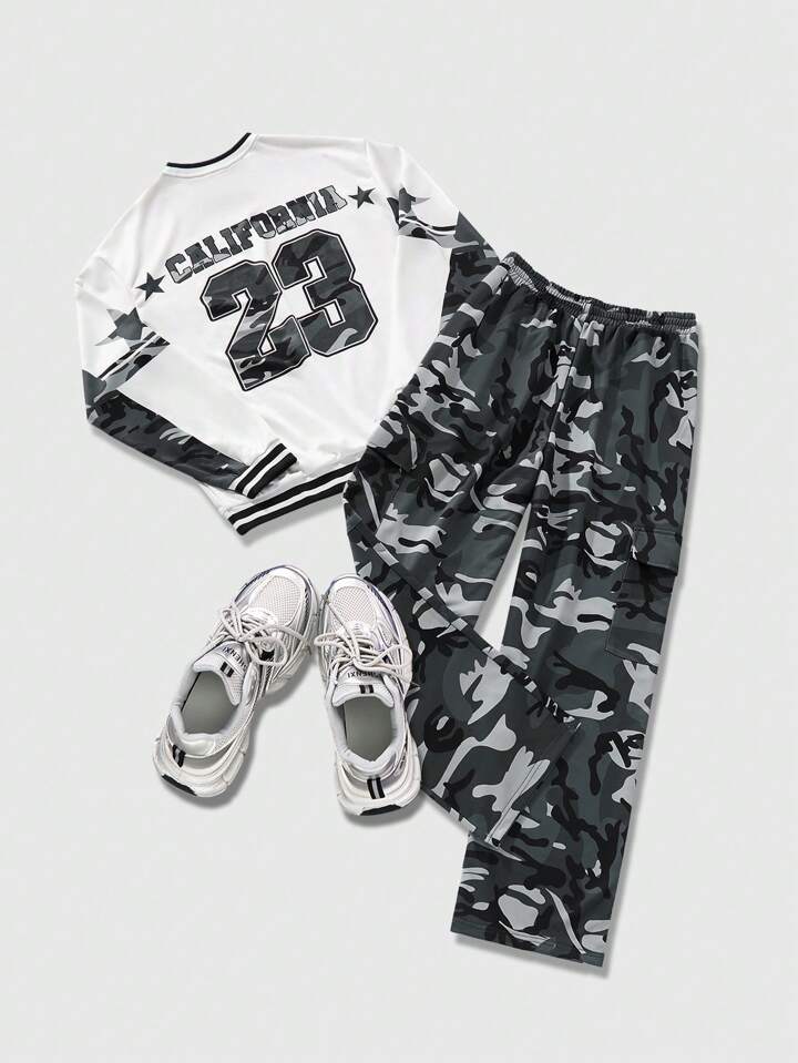 Street Life 2pcs Men's Camouflage Numeral Print Sweatshirt And Sweatpants Set