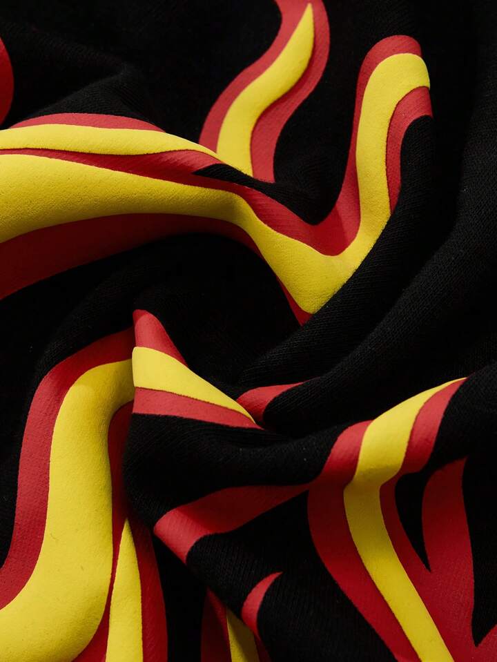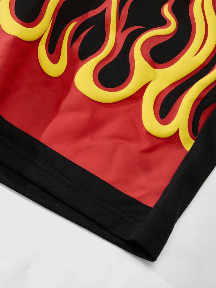 Street Life 2pcs/Set Men Flame Print Short Sleeve T-Shirt And Shorts