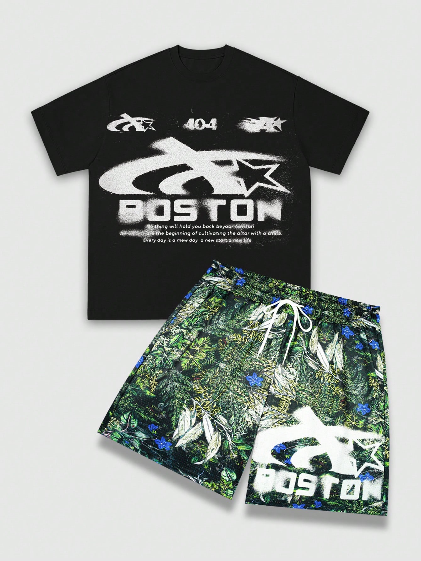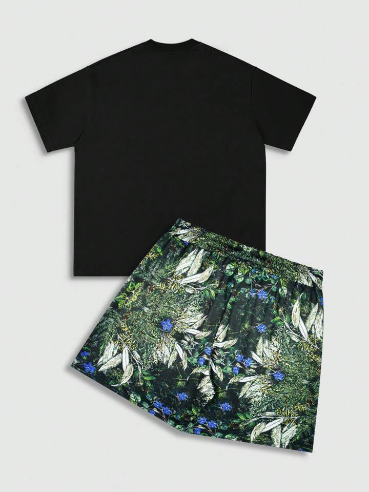 Street Life 2pcs/Set Men Y2K Print Short Sleeve T-Shirt And Shorts Outfit