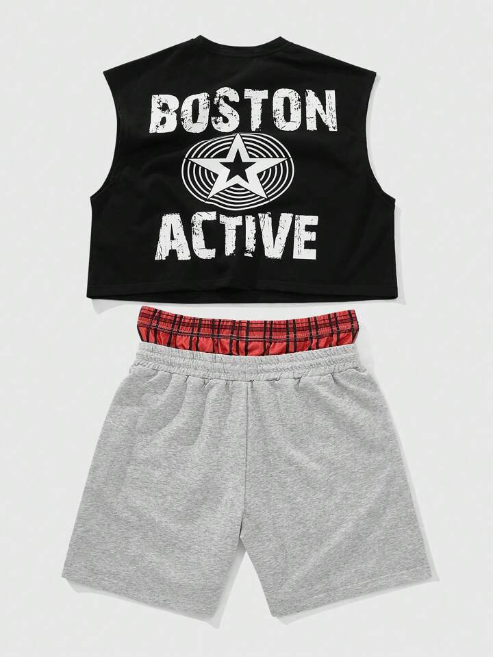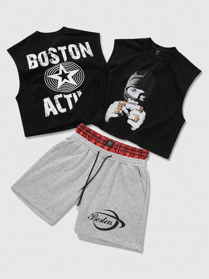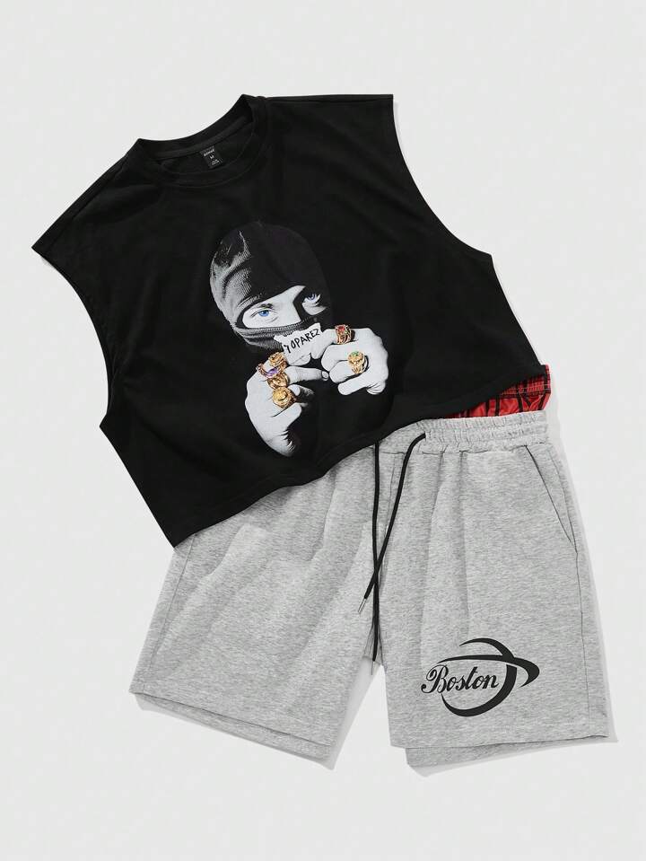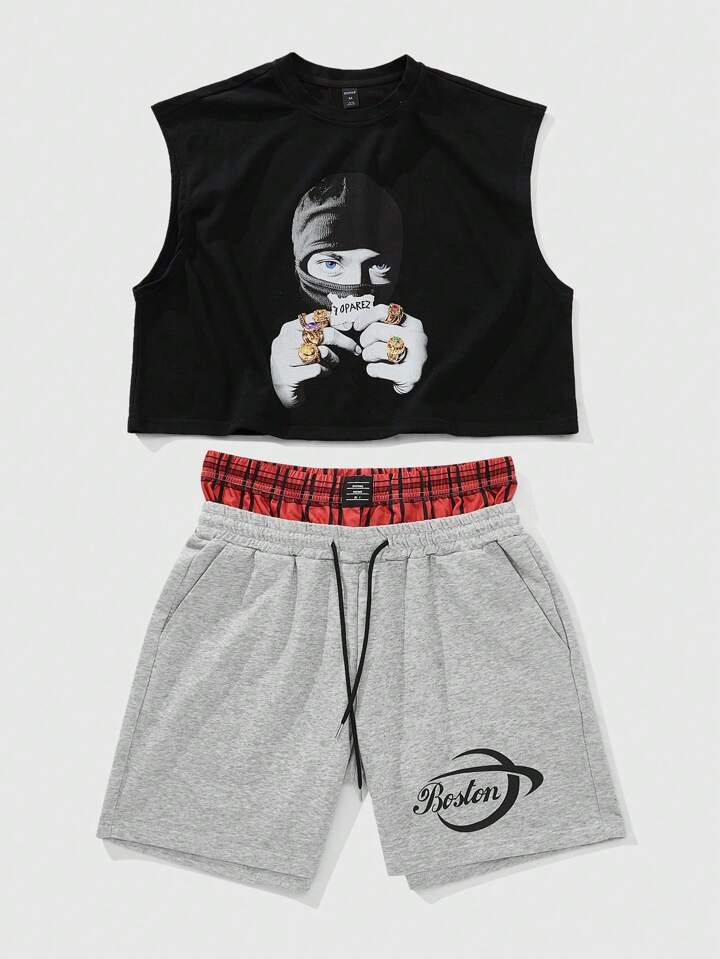 Street Life 2pcs/Set Men's Streetwear Graphic Print Tank Top And Shorts Suit