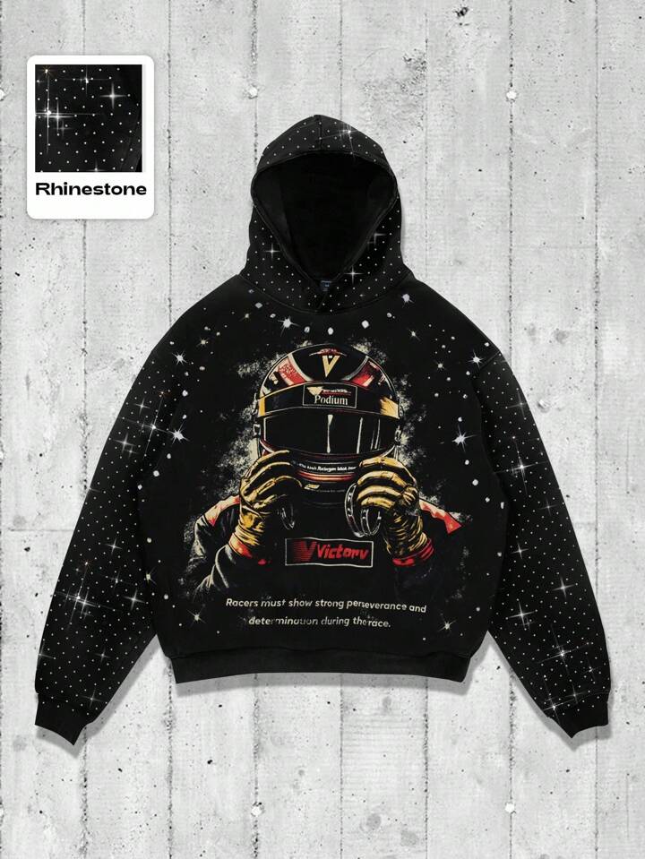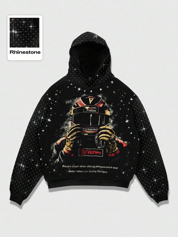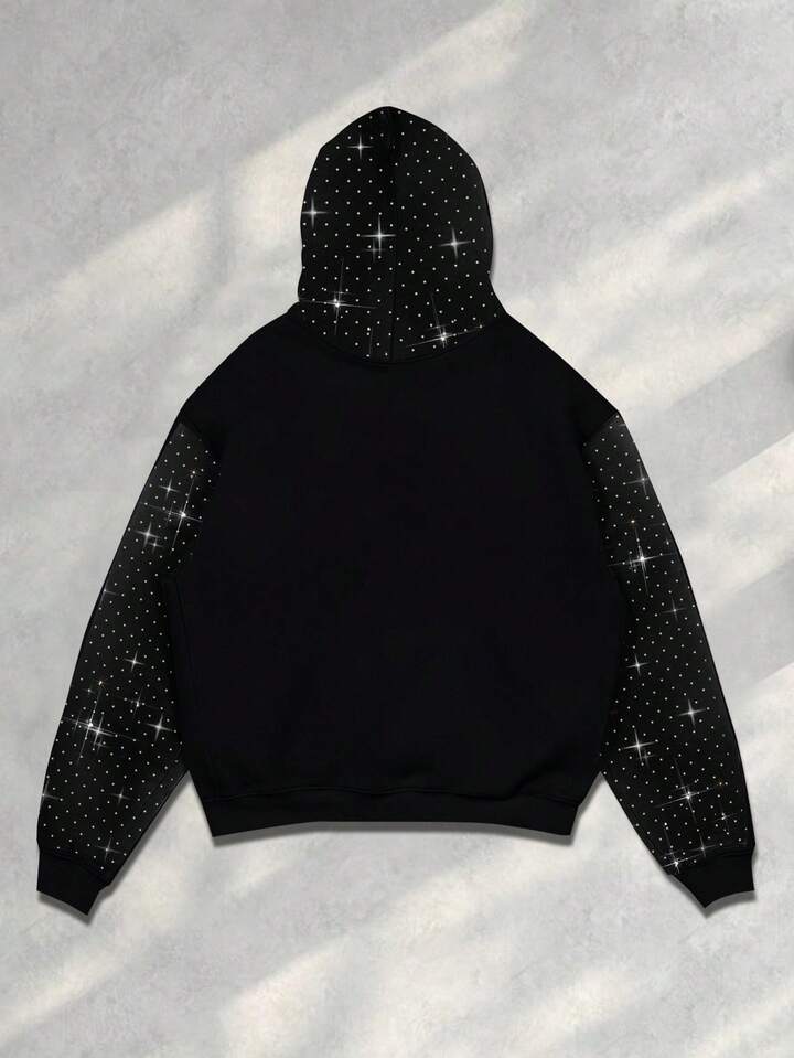 Street Life Astronaut Print Rhinestone Embellished Casual Hoodie Sweatshirt