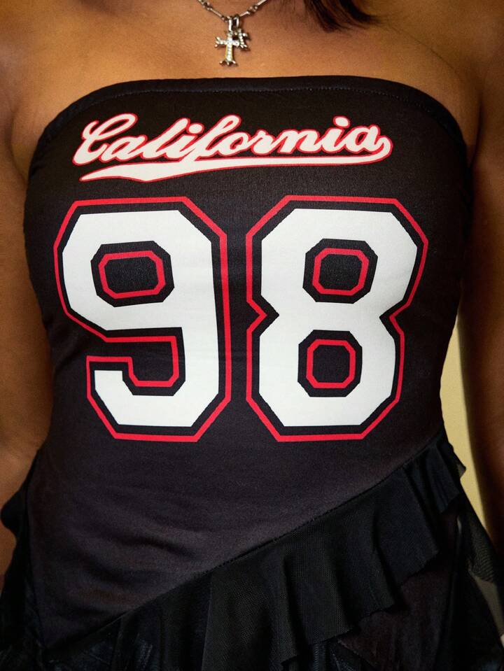 Street Life California Street Style Floral & Numeric Print Ruffle Trim Crop Top For Women