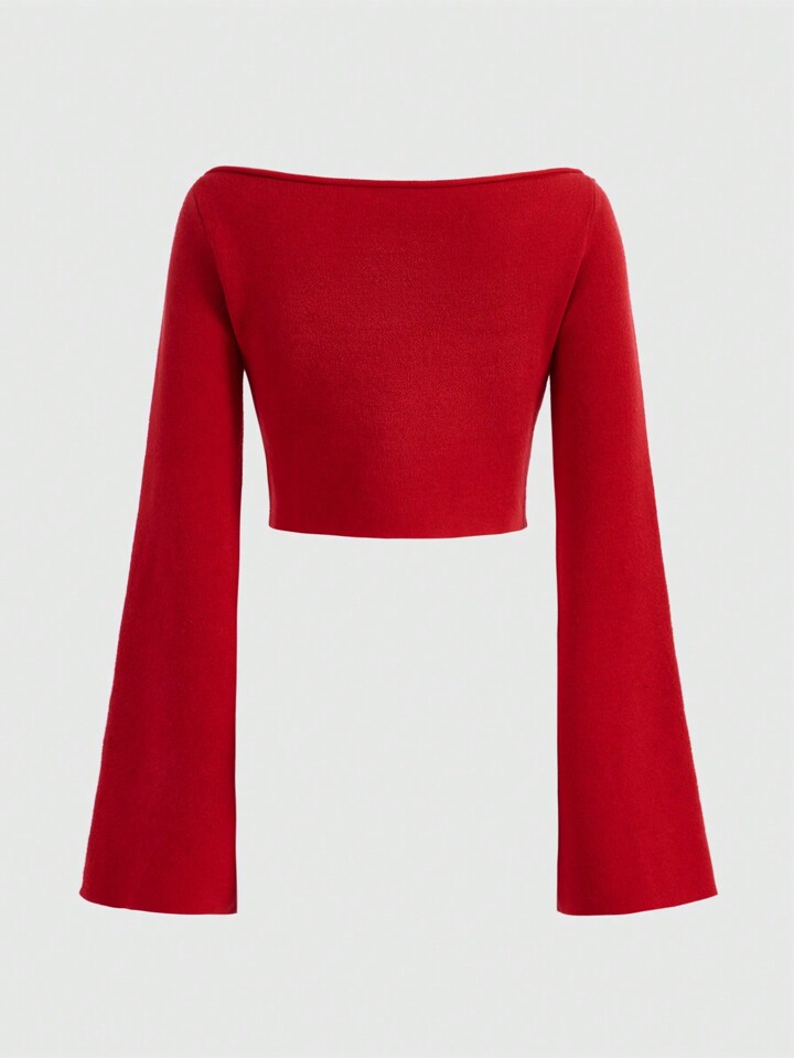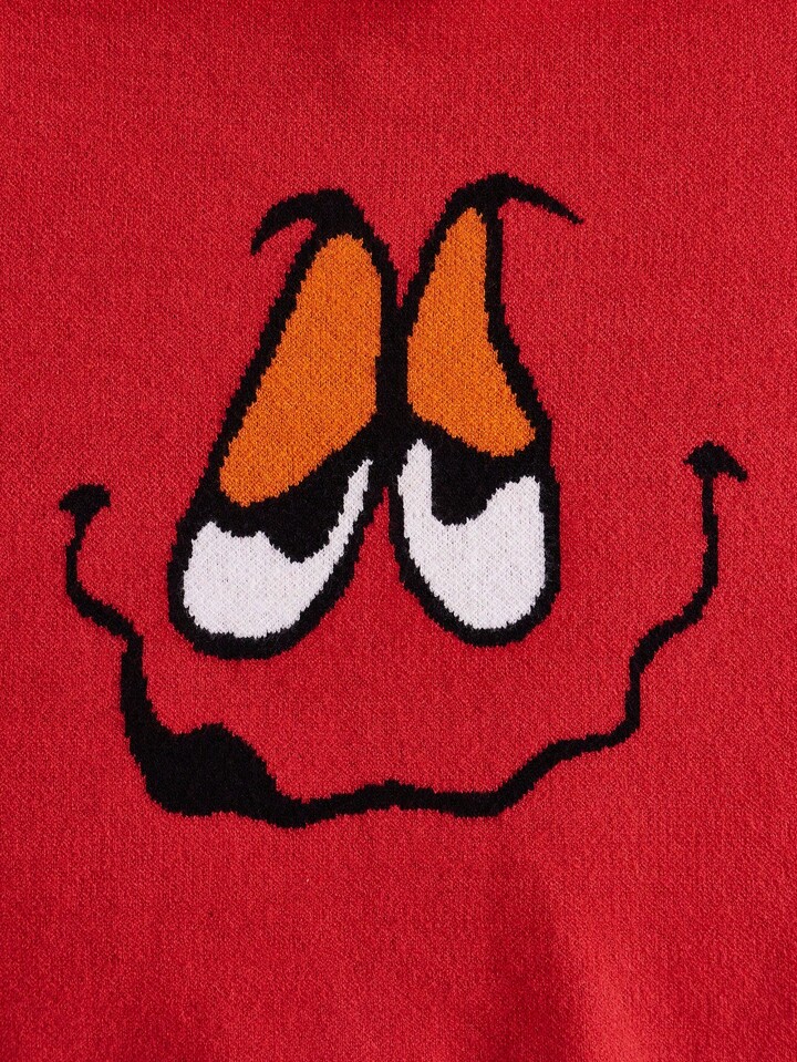 Street Life Cartoon Pattern Boat Neck Trumpet Sleeve Crop Sweater