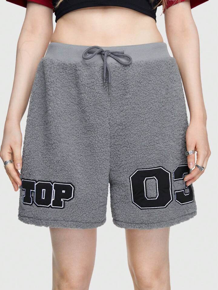 Street Life Casual Street Style Letter Embroidery Shearling Sport Shorts Comfortable Loose Fit For Women