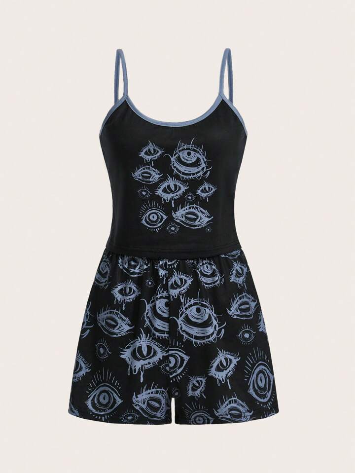 Street Life Eye Print Contrast Binding PJ Set