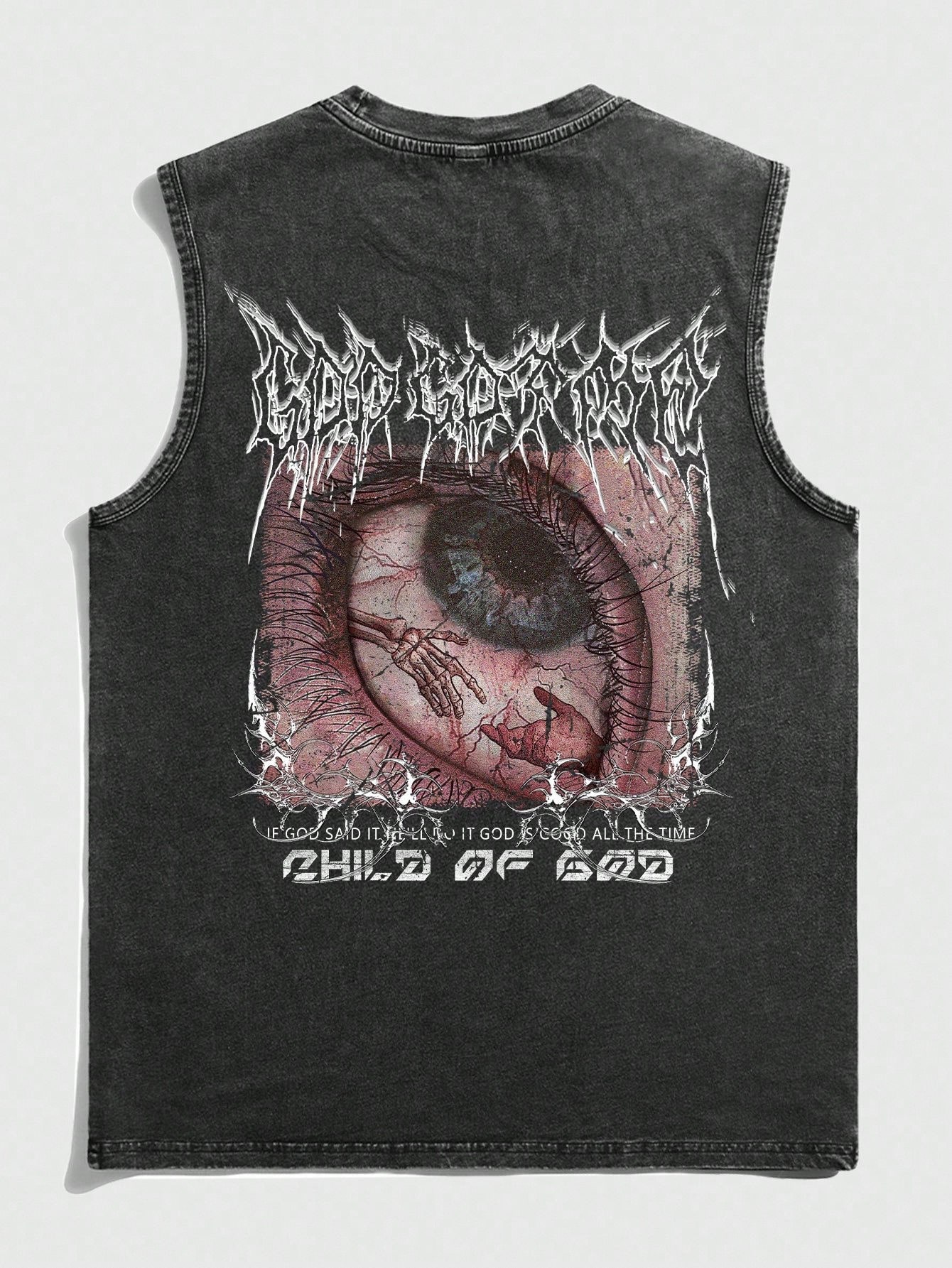 Street Life Fashionable Street Style Eye Print Sleeveless Top