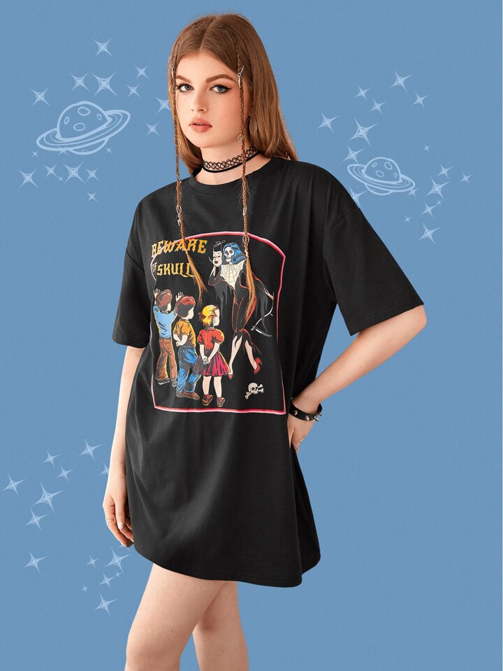 Street Life Figure Graphic Oversized Tee