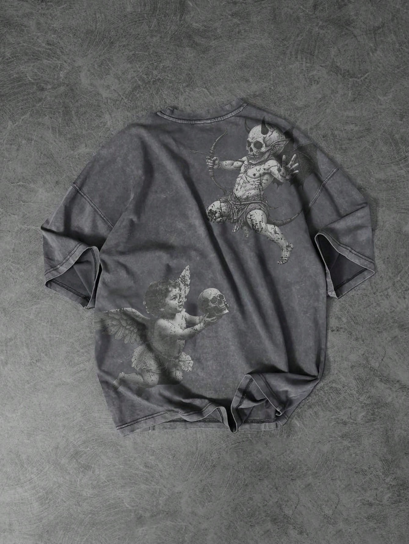 Street Life Goth Men's Black Angel & Devil Skull Print Casual T-Shirt, Summer