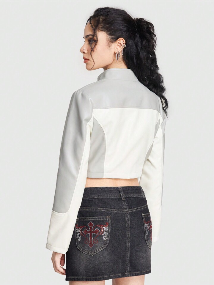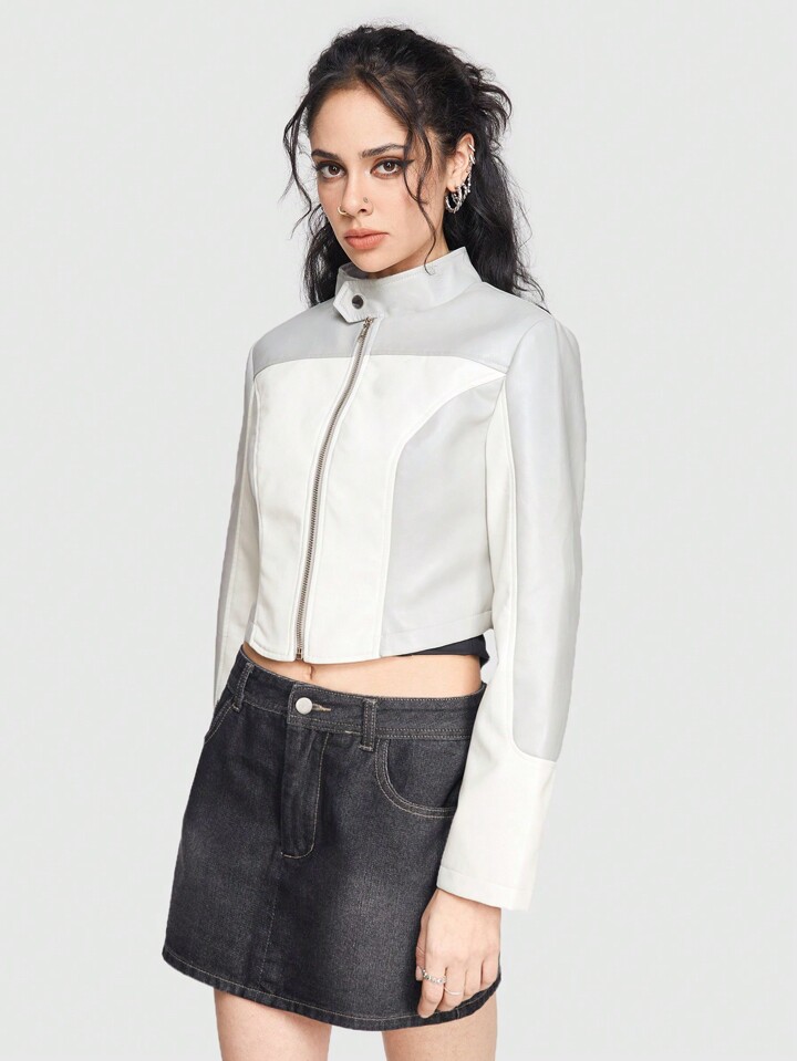 Street Life Gray And White Pu Spliced Motorcycle Jacket