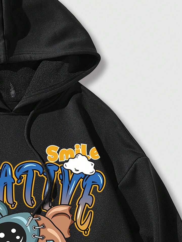 Street Life Guys Bear & Letter Graphic Drawstring Hoodie