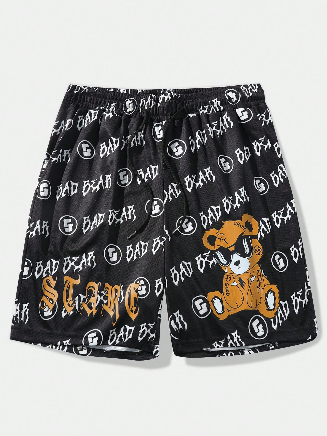 Street Life Guys Bear & Letter Graphic Drawstring Waist Shorts