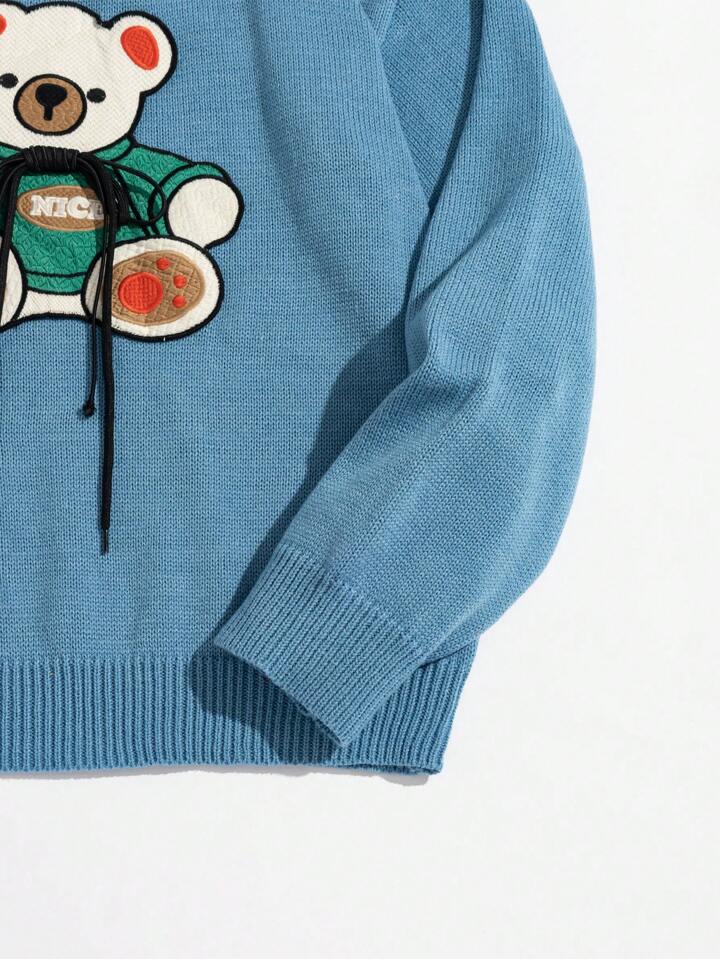 Street Life Guys Bear Pattern Drop Shoulder Sweater