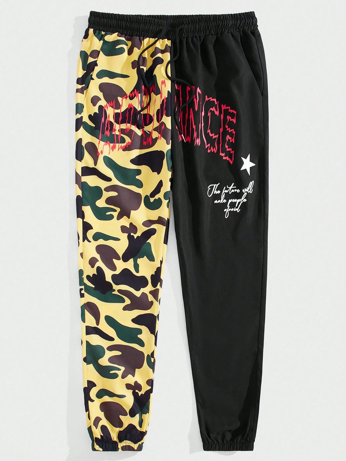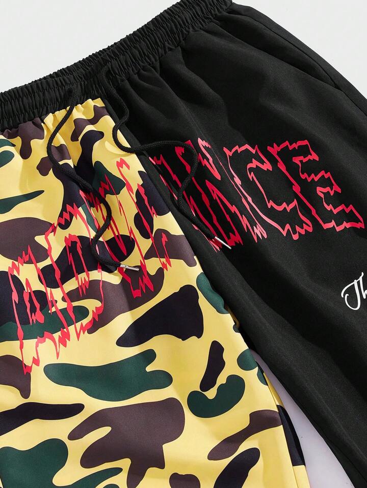 Street Life Guys Camo & Letter Graphic Drawstring Waist Pants