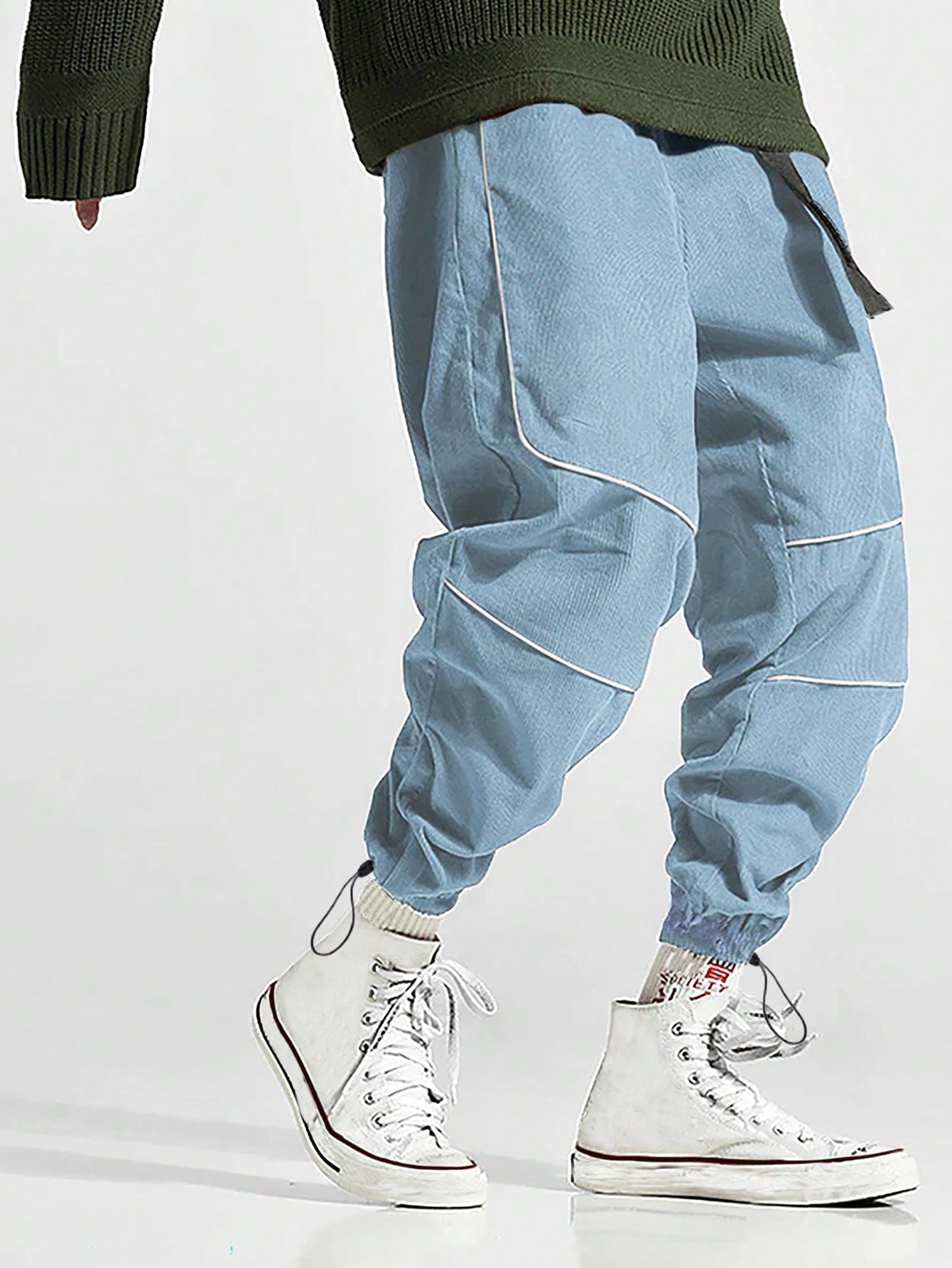 Street Life Guys Contrast Piping Elastic Waist Drawstring Hem Pants