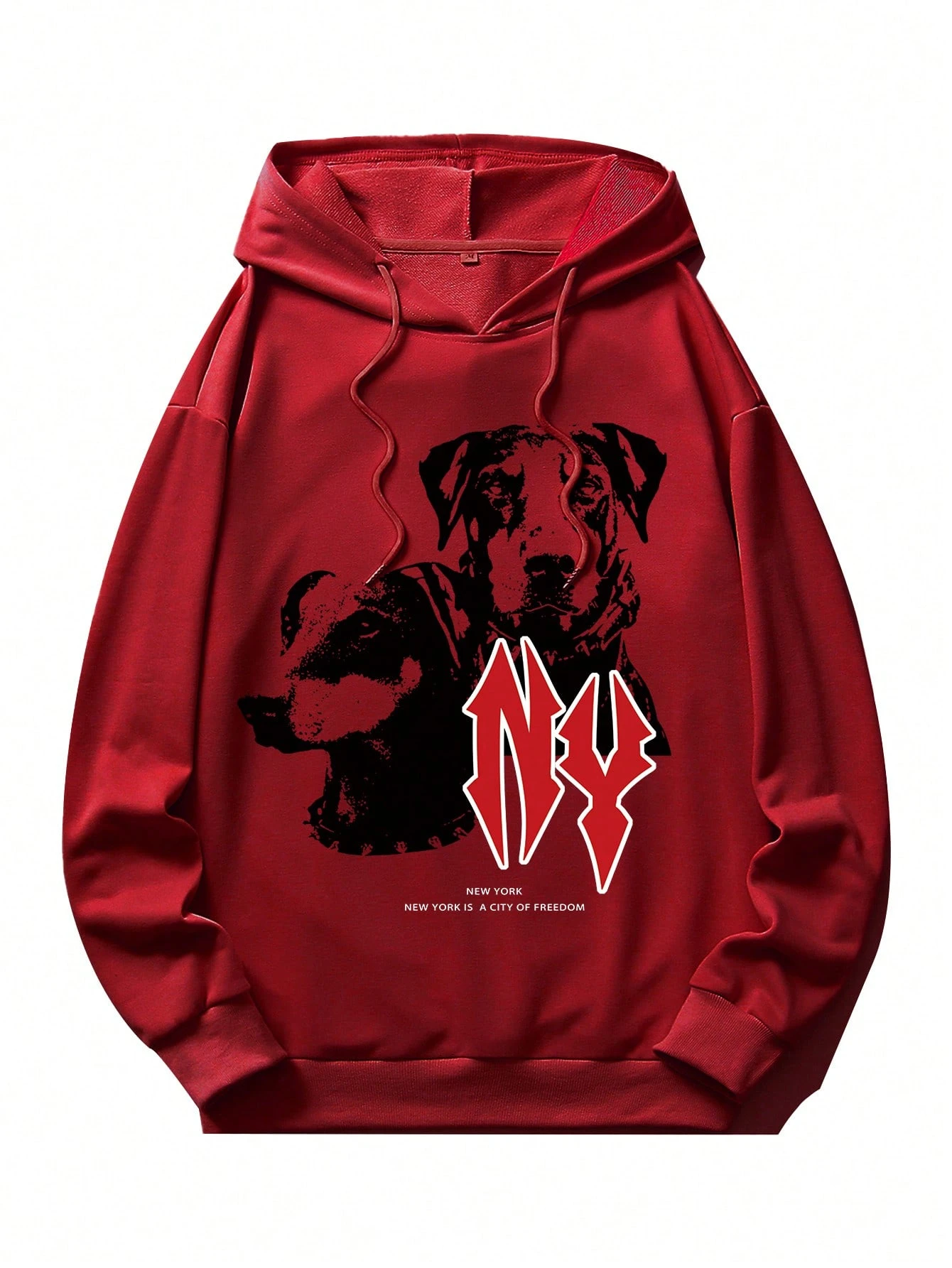 Street Life Guys Dog & Slogan Graphic Drawstring Hoodie