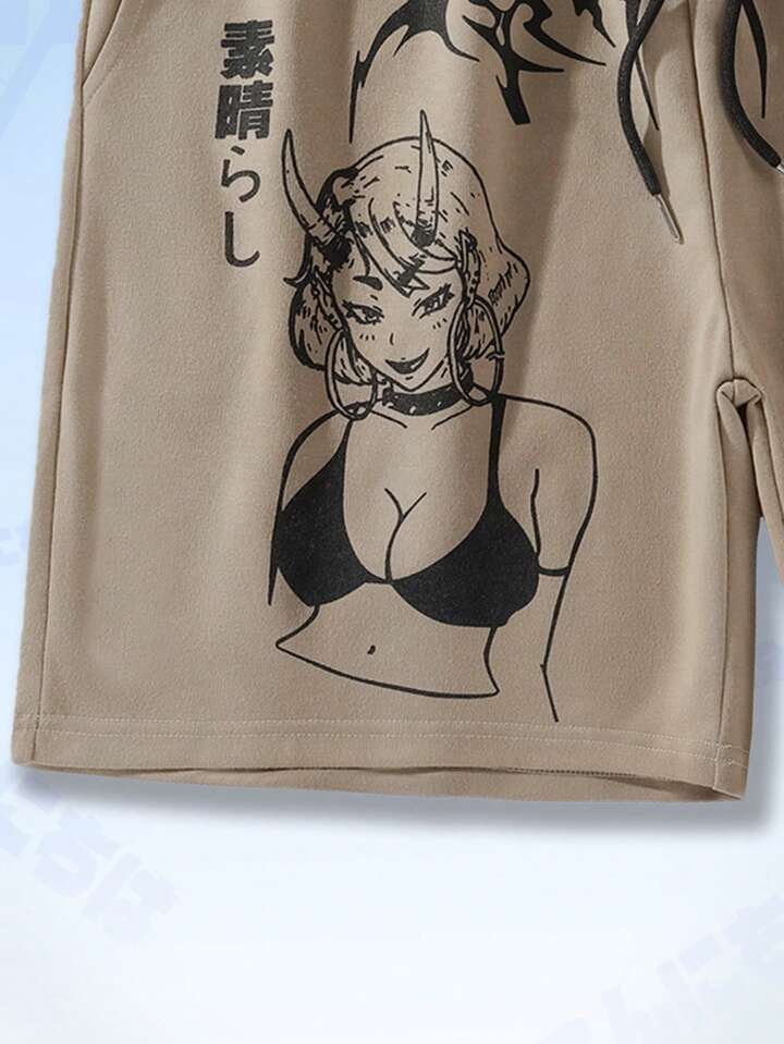 Street Life Guys Figure Graphic Drawstring Waist Shorts