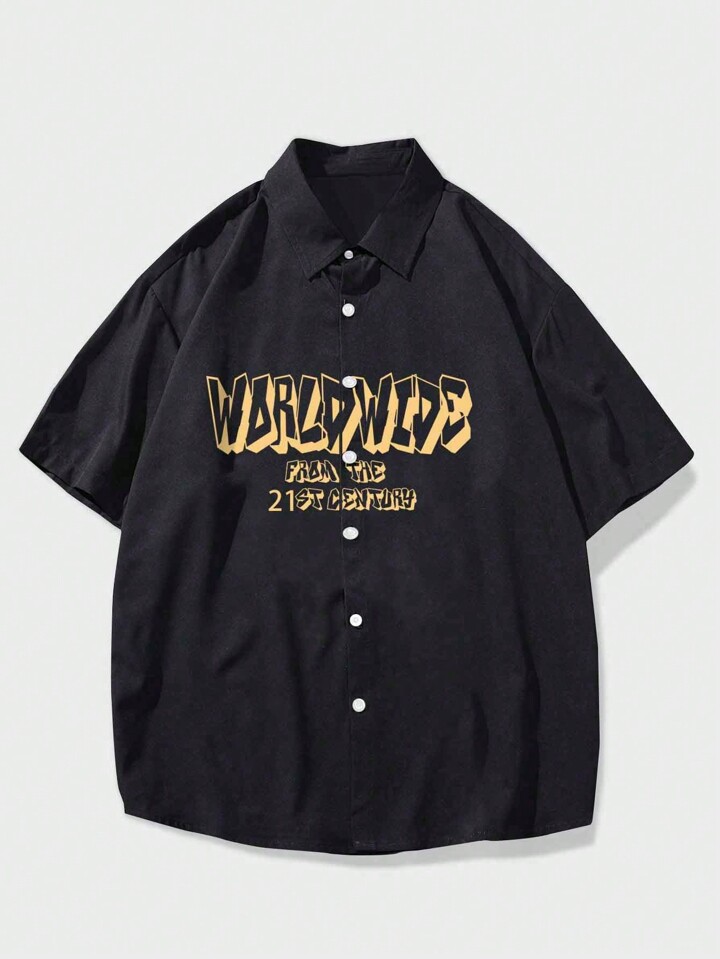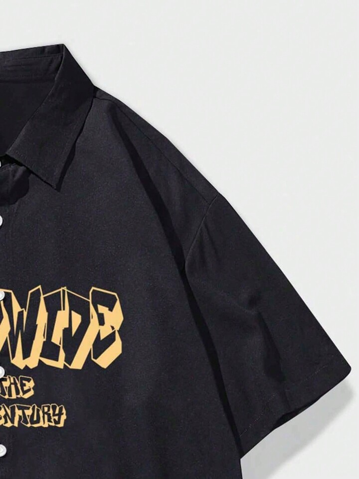 Street Life Guys Letter Cartoon Graphic Button Front Shirt