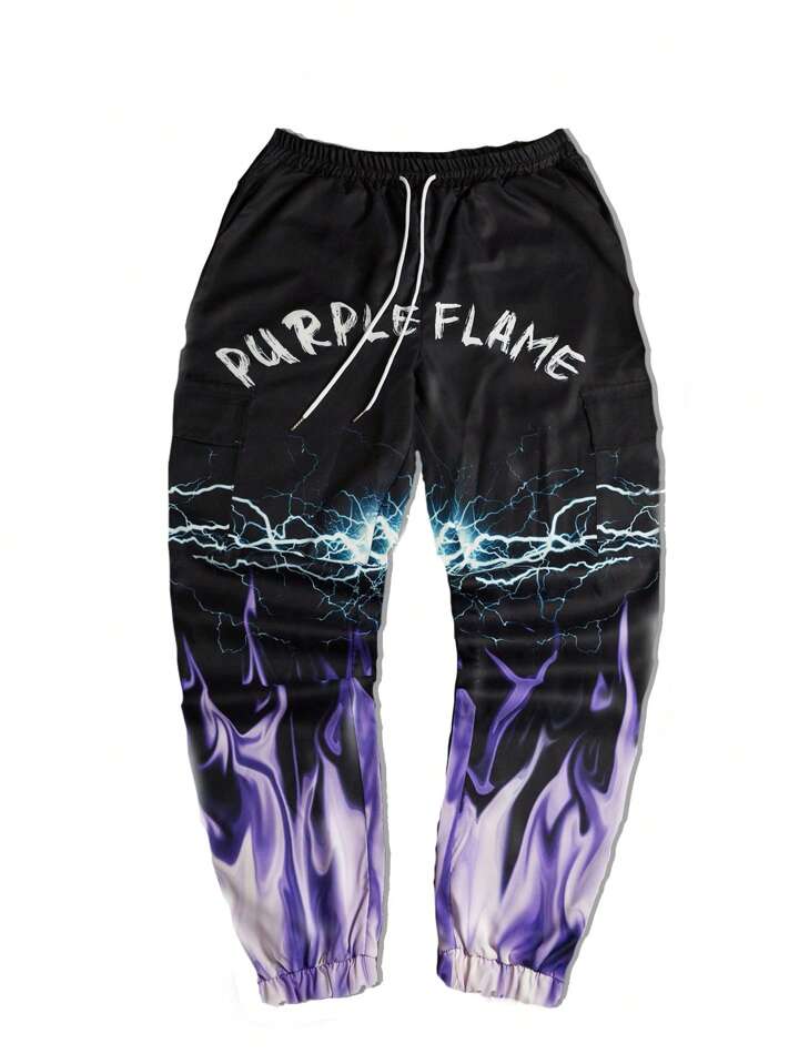 Street Life Guys Letter & Fire Print Drawstring Waist Pants