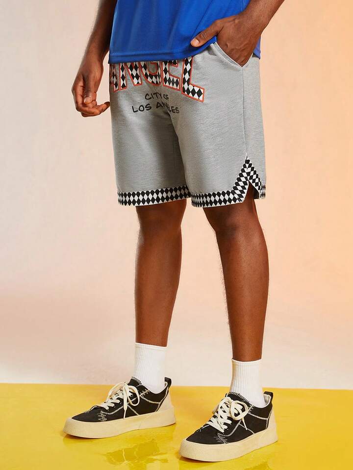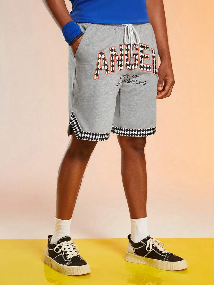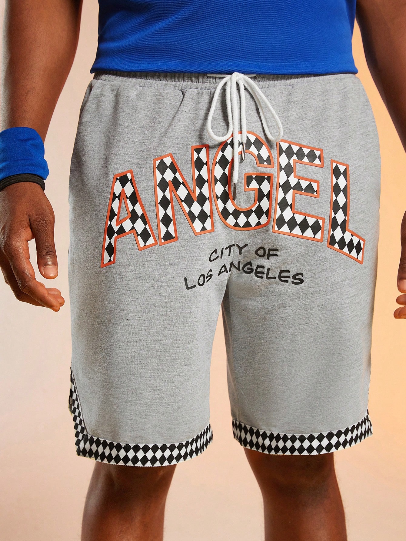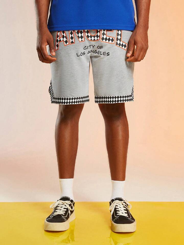 Street Life Guys Letter Graphic Argyle Print Drawstring Waist Shorts